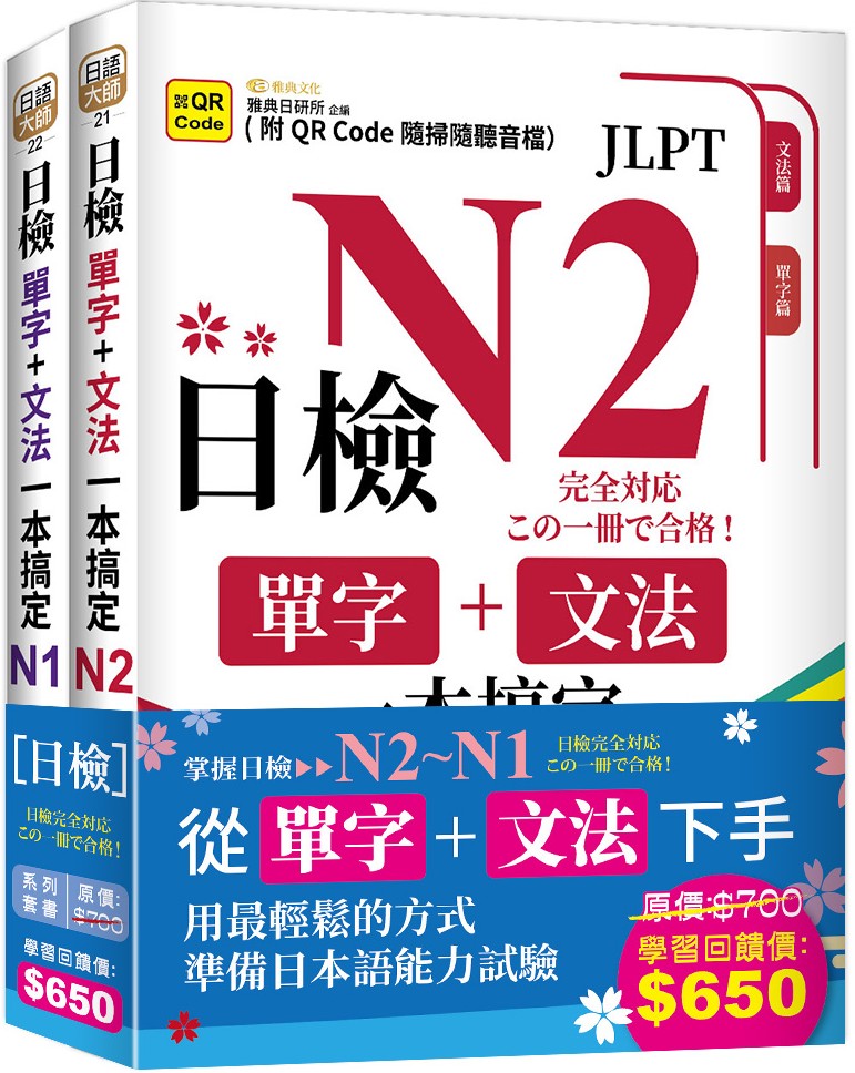 書名 / | 日檢單字+文法一本搞定: N2-N1套書組 (第3版 附QR Code 2冊合售) |
