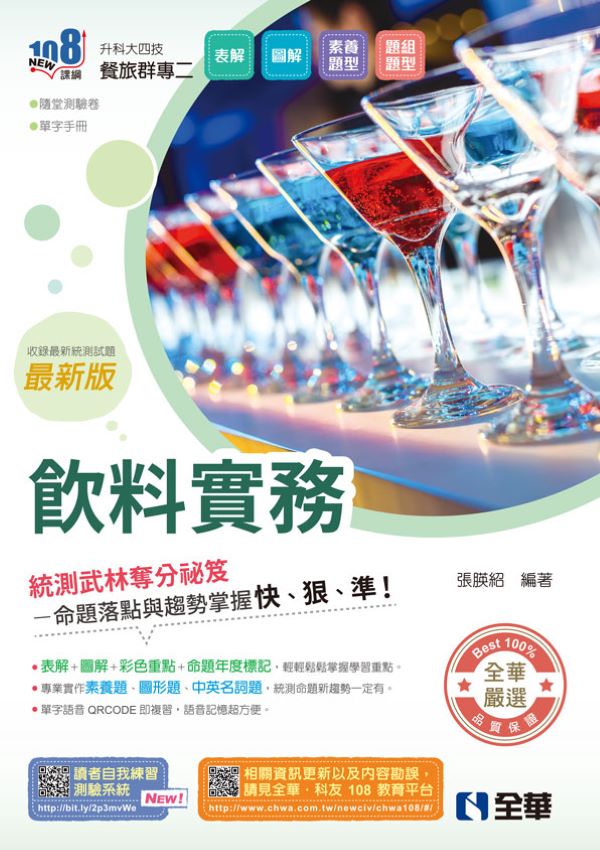 簡介 / | 升科大四技: 飲料實務 (2026最新版 餐旅群專二 附隨堂測驗卷 單字手冊):本書係參考教育部公佈之十二年國民基本教育技術型高級中等學校群科課程綱要「飲料實務」課程綱要之 |