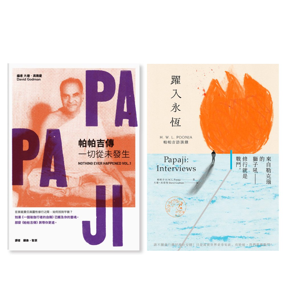 商品描述 | 帕帕吉入門套書 (2冊合售):1.《帕帕吉傳:一切從未發生》在家庭責任與修行之間,如何找到平衡?如果《一個瑜伽行者的自傳》已觸及你的靈魂,那麼《帕帕吉傳》將帶你到更遠 |