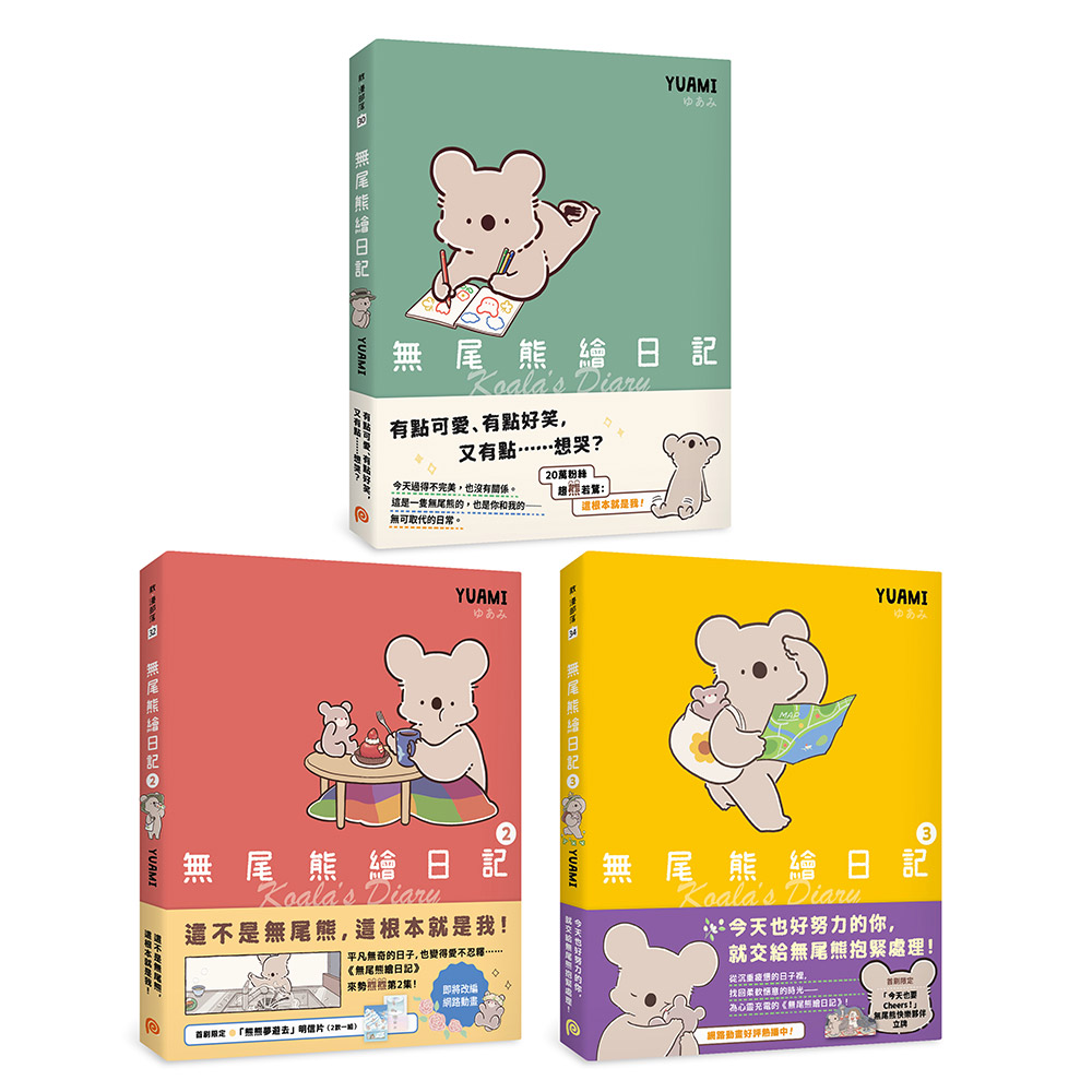 內容簡介 《無尾熊繪日記1》有點可愛、有點好笑,又有點……想哭?今天過得不完美,也沒有關係。這是一隻無尾熊的,也是你和我的——無可取代的日常。ʕ•ᴥ•ʔ|來勢熊熊!引發話題的「無尾熊繪日記」首次登台!作者YUAMI在推特上投稿一隻無尾熊每天的生活,超可愛的畫風和引發共鳴的舉動,吸引了無數趨「熊」若鶩的粉絲,也讓YUAMI的推特快速突破20萬追蹤。第一本書出版後隨即再版,緊接著出版的第二集也迅速再版!ʕ•ᴥ•ʔ|熊模熊樣!92篇共感度MAAAAAX的短篇漫畫!「看了鬼片很在意身後的無尾熊」、「決定早睡後滑了一整晚手機的無尾熊」、「到了超商就忘記來買什麼的無尾熊」、「很累的時候反而開始打掃的無尾熊」……明明是無尾熊,卻讓人忍不住大喊:「這根本就是我!」ʕ•ᴥ•ʔ|熊有成竹!完美重現日版質感!台灣版比照日版規格,雙書封、全彩印刷,完整保留作者從書裡到書外的所有插畫和設計。《無尾熊繪日記2》這不是無尾熊,這根本就是我!平凡無奇的日子,也變得愛不忍釋……《無尾熊繪日記》來勢熊熊第2集!\即將改編/ʕ網路動畫 ʔʕ•ᴥ•ʔ|「趨熊若鶩」爆話題!推特上連載的無尾熊每日生活,超可愛的畫風和引發共鳴的四格漫畫,使無數粉絲直呼「超有同感」、「會被逼哭」,更讓作者YUAMI從素人一舉晉升為擁有20萬粉絲的插畫家。第一本書出版後迅速再刷,緊接著出版的第二集也迅速再刷,目前全系列已好評出版第四集!ʕ•ᴥ•ʔ|「熊模熊樣」引熱議!精選收錄+全新繪製,超過80篇四格&短篇漫畫!〈整理房間毫無進展的無尾熊〉、〈緊要關頭東西用完的無尾熊〉、〈總是拍出閉眼照的無尾熊〉、〈忘記要筆記什麼的無尾熊〉、〈明明非常累但鑽進被窩中就突然睡意全消的無尾熊〉……讓人不禁微笑,也會有這樣的日子嘛!ʕ•ᴥ•ʔ|「熊有成竹」超好評!比照日版規格製作書衣、內封、扉頁、內頁,全彩印刷,完整保留作者從書裡到書外的所有插畫和設計,作者收到繁體中文版樣書後開心發文分享!《無尾熊繪日記3【首刷限定版】》今天也好努力的你,就交給無尾熊抱緊處理!從沉重疲憊的日子裡,找回柔軟愜意的時光——為心靈充電的《無尾熊繪日記》!\好評熱播中/ʕ網路動畫 ʔʕ•ᴥ•ʔ|「熊熊當道」人氣破萬!Amazon 4.9星高分評價:「原來日常也能如此可愛!」陪伴超過20萬粉絲的超人氣無尾熊回來啦!跟朋友宅在家的悠閒假日、下班後犒賞自己的美食、跟娃娃一起吃飯的時光……插畫家YUAMI用最溫柔的視角,描繪出藏身日常的小確幸!超可愛畫風和引發共鳴的四格漫畫,為你帶來無須言語的幸福感,直擊心靈的超治癒繪本!ʕ•ᴥ•ʔ|「飛熊入夢」新夥伴即將加入?! 無尾熊即將展開全新邂逅,溫馨長篇首度登場!跟無尾熊一起交新朋友吧!懶洋洋夥伴 + 害羞鄰居 = 讓每一天更加柔軟可愛!精選收錄30篇四格和長篇漫畫,簡單卻讓人心動的回憶——〈豔紅色夕陽與無尾熊〉、〈散步的紀念品與無尾熊〉、〈篝火香與無尾熊〉……感動收錄〈與熊熊的相遇—the other side—〉從熊熊視角描繪與無尾熊相遇前的故事!ʕ•ᴥ•ʔ|「熊姿英發」完美重現日版質感!首刷限定,隨書獨家贈送「今天也要Cheers!」無尾熊快樂夥伴立牌!比照日版規格製作書衣、內封、扉頁、內頁,全彩印刷,完整保留作者從書裡到書外的所有插畫和設計,每一頁幸福都值得細細品味!首刷再加碼,隨書獨家贈送「今天也要Cheers!」無尾熊快樂夥伴立牌,陪你慶祝可愛的每一天!