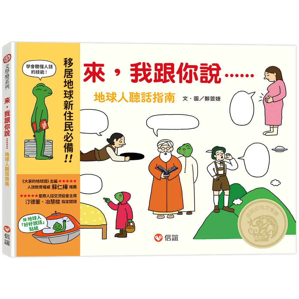 內容簡介 ◝(⁰▿⁰)◜歡迎光臨地球◝(⁰▿⁰)◜地球人聽話指南 移居地球新住民必備服用!怎麼用?來,我跟你說……■ 隨書附贈 地球人「好好說話」貼紙 ~陪你傳話表心意~ ★ ★ ★ ★ ★ 五星好評推薦 ★ ★ ★ ★ ★《大家的地球語》主編、人話教育權威 蘇仁樺 推薦星際人話交流協會主席 汀德董˙冶慧梭 指定閱讀外星人貝貝移居地球,過海關、打扮人模人樣、拍照建檔後,還得進入語言部,必修「人類語言速成班」,學習聽懂地球人的意思!第一堂課,是「聆聽練習」。同一句話「來,我跟你說……」,有時是引起注意、交代事情;有時是想講悄悄話,或是大聊當年勇;語氣一變,有時是大師要開示智慧;有時是別人情緒失控,提醒對方:「請冷靜一下。」遇到尷尬時刻,這句話,也是替人解圍、逃離窘境的最佳脫身術。不同情況下,一句話的意思也大不同,在正式成為地球人之前,貝貝能否解鎖「聽懂人話」的生存技能呢?~先聽懂,才能說得對~學會察言觀色,解鎖「聽懂人話」技能秒破話中有話 ╳ 聰明回話終結尬聽、亂回、空氣凝結的社交時刻! 《來,我跟你說-地球人聽話指南》以外星新移民的視角,幽默拆解「來,我跟你說……」這句話,在不同情境與語氣下,背後潛藏「話中有話」的弦外之趣。孩子在笑著理解各種語言小劇場時,也會慢慢理解人際互動裡那些沒說出口的訊息。原來,在複雜的對話中,真正讓人卡關的,往往不是說錯話,而是沒聽懂對方想表達的意思。 學會聽得懂,是這本書最迷人的邀請;封面上,每一個「來,我跟你說……」的插圖情境,都成了孩子自然延伸的對話練習。懷孕的媽媽,想對肚子裡的小寶寶說什麼?大野狼遇上小紅帽,會拋出什麼驚人話語?孩子可以盡情發揮,在一來一往的對話中,練習溝通與回應。 這本給孩子的「人話觀察書」,不只是有趣的「聽話練習」,也是一堂同理心和社交感知力的養成課。怎麼聽,才能抓住話裡的心思?怎麼說,才不會踩雷?跟著外星人貝貝一起察言觀色、仔細聽、好好說,當孩子學會用心聆聽、聰明回話,也就能更自在的與人互動,輕鬆表達自我了。內容試閱