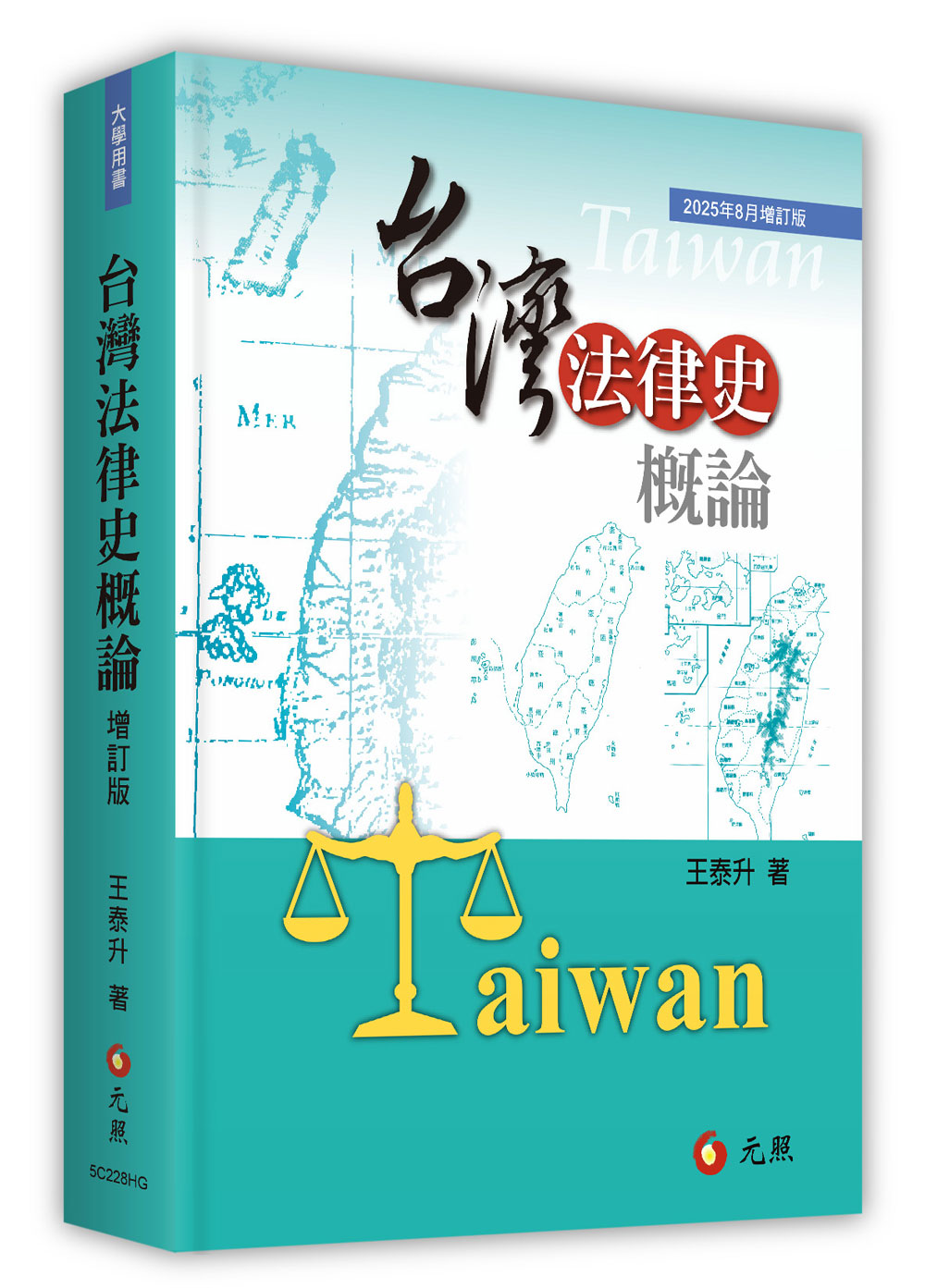 作者介紹 王泰升1960年生於台灣台南市現 職•台灣大學講座教授、科際整合法律學研究所特聘教授•中央研究院台史所暨法律所合聘研究員•教育部終身榮譽國家講座學 歷•西雅圖華盛頓大學法學博士(Ph.D., 1992)、法學碩士(1990)•台北大學法學碩士(1988)•台灣大學法學士(1982)經 歷•國科會傑出特約研究員獎(2022)•教育部國家講座主持人獎(兩次,2019、2023)•交通大學講座教授(訪問學者,2018-2021)•台灣制度與經濟史學會理事長(2018-2019)•中央研究院人文及社會科學學術性專書獎(2018)•台灣大學出版中心主任(2016-2020)•台灣大學教學優良獎(校級:2016-2017、2019;院級:2015、2018)•台灣大學講座教授(2014、2017、2020、2023)•西雅圖華盛頓大學法學院校友終身成就獎(2013)•國科會傑出研究獎(三次,2001、2010、2013)•台灣法學會理事長(2011-2012)•台灣大學優良導師獎(2009)•行政院國科會法律學門召集人(2007-2009)•台灣法律史學會理事長(2006-2023)•台灣大學科際整合法律學研究所所長兼法律學院副院長(2006-2009)•台灣大學終身特聘教授(2006)•國科會/科技部社會科學研究中心/人文社會科學研究中心 補助出版專書及論文集/專書(三次,2005、2018、2022)•台灣大學遴選為十二位「經師與人師」之一(2005)•教育部學術獎(2004)•國史館台灣文獻館傑出文獻研究獎(2002)•墨爾本大學、哈佛大學、西雅圖華盛頓大學、早稻田大學、 新加坡大學、東京大學、馬普所歐洲法律史研究中心等訪問學者 (1996、2001、2005及2013、2006、2007、2010、2012)•台灣大學教學傑出獎(2000)•執業律師(1986-1989,1993)