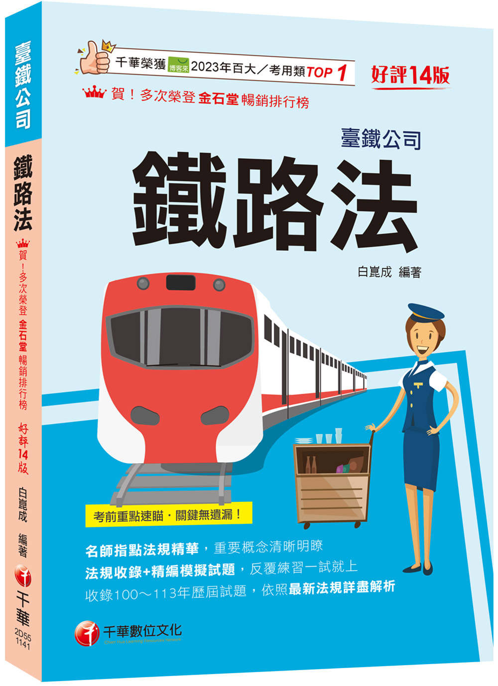 作者介紹 千華鐵路名師——白崑成學歷:國立台灣大學政治系公共行政系畢業國立交通大學管理科學(企管)研究所碩士主要訓練:美國郵政管理學院局所管理班結業以色列亞非勞工研究所高級幹部班結業著作:《鐵路法(含概要、大意)》,千華數位文化。《鐵路運輸學(含概要、大意)》,千華數位文化。《逼真!鐵路運輸學(含概要、大意)模擬題庫+歷年試題》,千華數位文化。《事務管理大意[鐵路特考]》,千華數位文化。