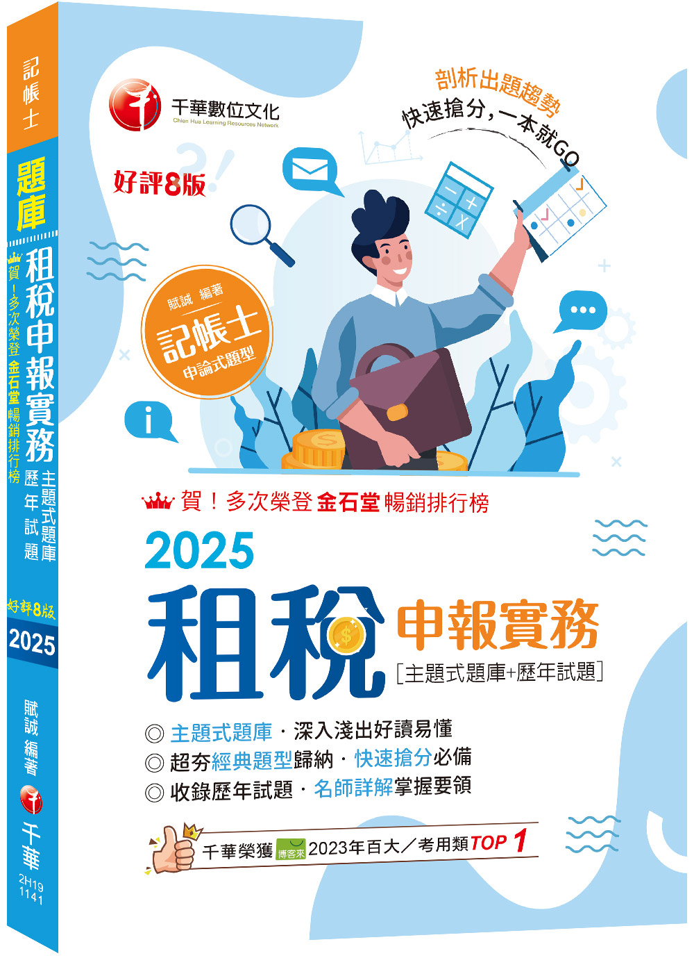 商品描述 | 2025租稅申報實務: 主題式題庫+歷年試題 (第8版 記帳士):◎主題式題庫‧深入淺出好讀易懂 本書收錄主題式題庫,除了依照考選部命題範圍、最新修訂法規,同時加入了每年 |