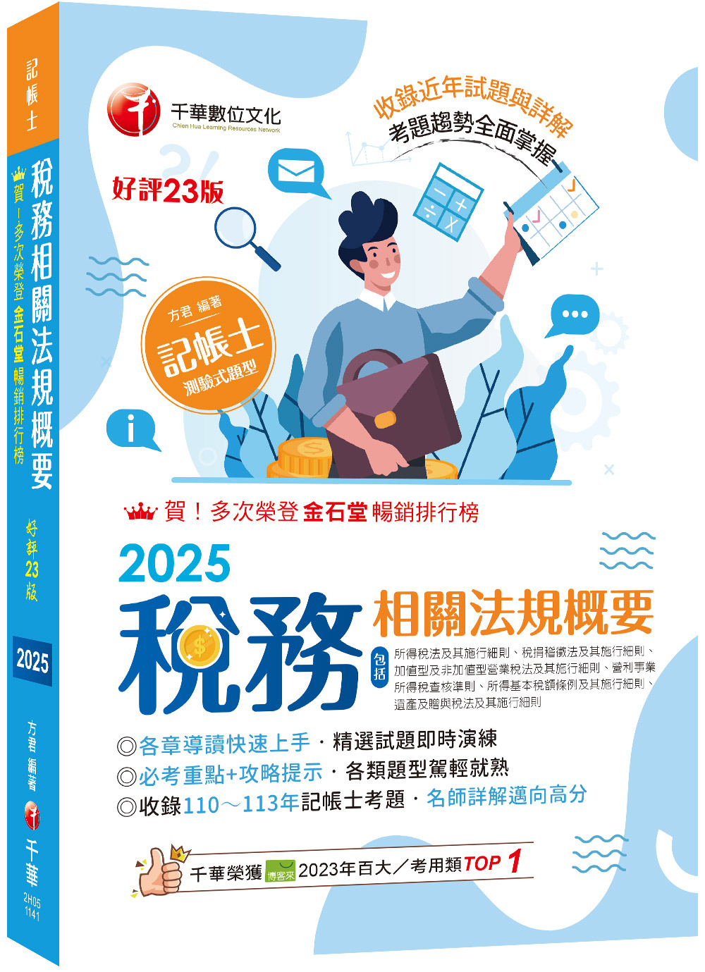 簡介 / | 2025稅務相關法規概要包括所得稅法、稅捐稽徵法、加值型及非加值型 (第23版 記帳士):在記帳士之考試範圍中,稅務相關法規概要之考試重點大致集中在:稅捐稽徵法及施行細則 |