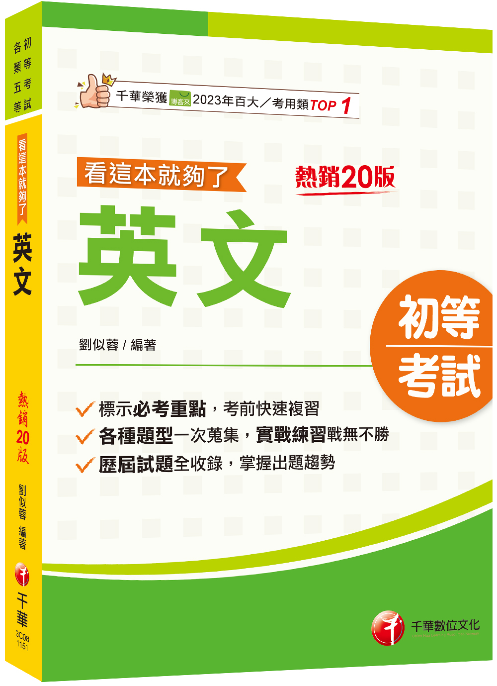 內容簡介 「我的英文就是學不好,反正只有15題,是不是該放棄?」「背單字片語好麻煩,背了就忘!文法又多又難懂,該怎麼辦?」千萬不能這麼想,初等考試或是地方特考五等考試沒你想的這麼難,只要選對適合的用書,你也能輕鬆戰勝,讓英文變成加分關鍵!◎標示必考重點,考前快速衝刺的加分寶典本書依照考試的出題率分作A、B、C三級,分別表示重要常考、增加實力、額外補充三種學習方式,方便你依照時間來決定三種等級的複習方式,也可以將考前準備時間分段,拆分成三次複習喔!此外,本書也針對文法和句型加以解說,並用粗黑編排突顯重點。◎單字、文法、各種題型一次蒐集,實戰練習戰無不勝將一些重要的會話彙編成表,內容含生活化的詞彙,使你能熟悉問與答的方式及內容,這些生活化的口語英語,看似簡單,其實包羅萬象,變化多端,同時也是初考英文考題常見的生活化詞彙考題出處,若不經常接觸,再簡單的英文有時也會讓人丈二金剛摸不著頭腦。◎107~114年歷屆試題完整收錄,融會貫通、鑑往知來本書蒐羅完整歷屆試題與解析,每一題都有詳細解析及中譯,並針對必考重點延伸補充「觀念延伸」,你只需多加演練,將錯誤的題目細心訂正,必能快速提升解題能力。藉由大量的試題來理解考試的重點與脈絡,如此一來,在考場上更能得心應手,輕鬆制霸考場!