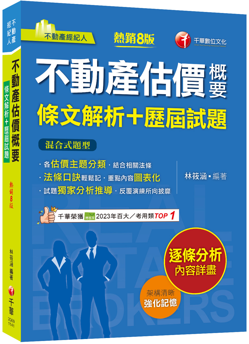 商品描述 | 2025不動產估價概要: 條文解析+歷屆試題 (第8版 不動產經紀人):主題式題庫‧深入淺出好讀易懂各估價主題分類‧結合相關法條法條口訣輕鬆記‧重點內容圖表化試題獨家分析推 |