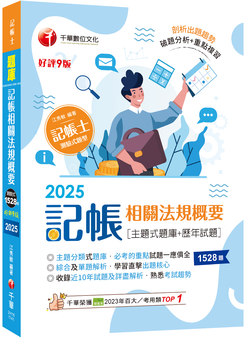 商品描述 | 2025記帳相關法規概要: 主題式題庫+歷年試題 (第9版 記帳士):★記帳士會考題目都在這!不用花時間找題目和解答,就是要節省你摸索的時間,讓你一次考取記帳士證照!主題式 |