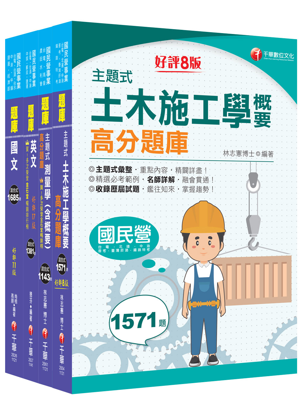 產品目錄 【套書內容】 《國文高分題庫》2025 06《國民營英文高分題庫》2024 12《主題式土木施工學概要高分題庫》2023 08《主題式測量學》2023 08★★ 註:套書出版日期為該套書籍上架日,實際單本出版日期請依單本為主。★★
