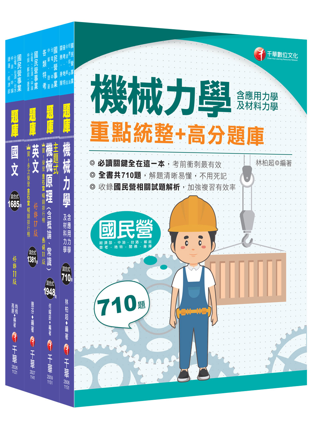商品描述 | 2025機械類中油招考題庫版套書 (4冊合售):【套書內容】《國文高分題庫》2025/06《國民營英文高分題庫》2024/12《主題式機械原理(含概論、常識)高分題庫》2025/05《機械力 |