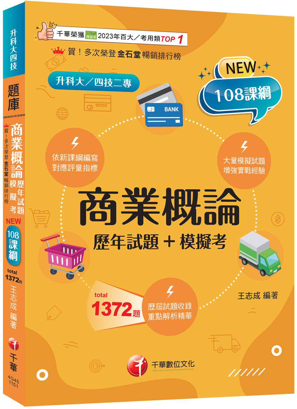 | 簡介 / | 商業概論: 歷年試題+模擬考 (2026版 108課綱 升科大 四技二專):賀!多次榮登金石堂暢銷榜◎依新課綱編寫‧對應評量指標◎大量模擬試題‧增強實戰經驗◎歷屆試題收錄‧重點 |