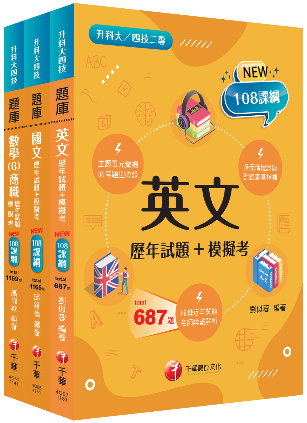 | 簡介 / | 2026共同科目商職 升科大四技題庫版套書 (108課綱 升科大 統測 四技二專 3冊合售):【套書內容】《國文[歷年試題+模擬考]》2025 07《英文[歷年試題+模擬考]》2025 07《數學 |