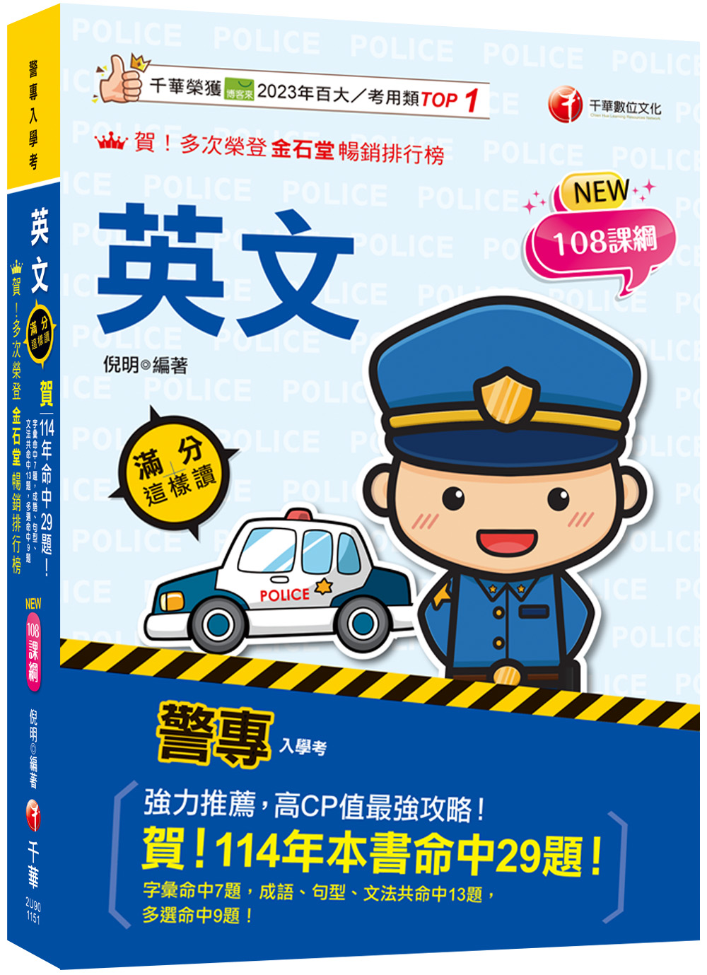 | 商品描述 | 2026警專英文滿分這樣讀 (警專入學考 一般警察消 防警察人員):◎高CP值命中率,考題趨勢無所遺漏﹗首先慶賀本書今年再度維持高命中率。直接命中了26題,而間接命中了3題, |