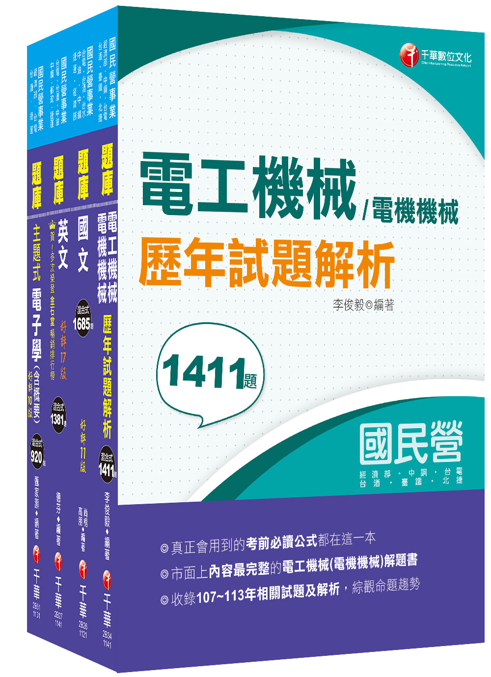 產品目錄 【套書內容】 《國文高分題庫》2025 06《英文高分題庫》2024 12《主題式電子學(含概要)高分題庫》2024 05《電工機械(電機機械)歷年試題解析》2025 04★★ 註:套書出版日期為該套書籍上架日,實際單本出版日期請依單本為主。★★