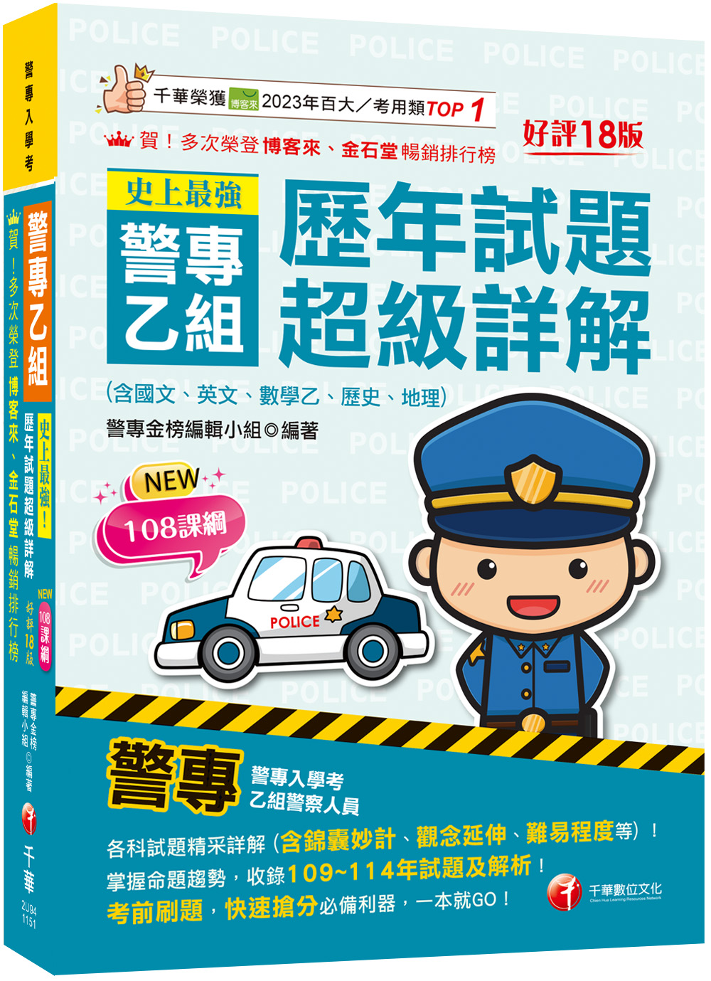 2026史上最強! 警專乙組歷年試題超級詳解: 含國文、英文、數學乙、歷史、地理 (第18版 警專入學考 乙組行政警察)