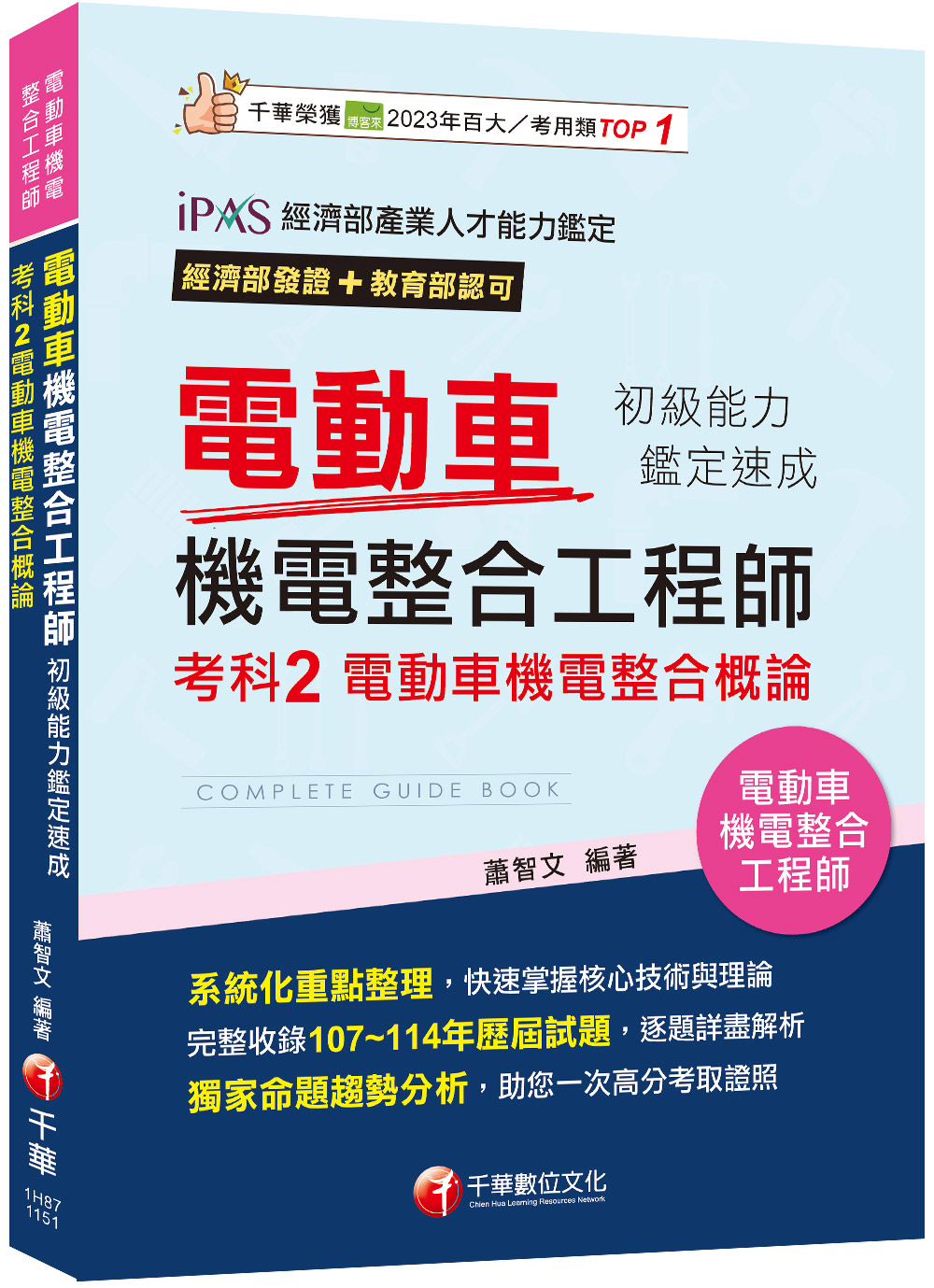 產品目錄 準備方法與考題分析 113~114年綜合考題分析 Chapter 1 機電整合系統的重要元件 第一節 車用感測器之特性與應用 第二節 車用控制器之特性與應用 第三節 車用致動器之特性與應用 Chapter 2 各子系統整合的基礎原理 第一節 電動車充電與電力設施系統整合 第二節 電動車儲能裝置與電能管理系統整合 第三節 電動車電控與通訊系統整合 第四節 電動車驅動、電機與傳動系統整合 第五節 電動車附件系統整合 Chapter 3 常見術語與定義 第一節 機電整合系統的重要元件 第二節 各子系統整合的基礎原理 Chapter 4 歷屆考題及解析 107年 第二次初級電動車機電整合工程師能力鑑定 108年 第一次初級電動車機電整合工程師能力鑑定 108年 第二次初級電動車機電整合工程師能力鑑定 109年 第一次初級電動車機電整合工程師能力鑑定 109年 第二次初級電動車機電整合工程師能力鑑定 110年 第一次初級電動車機電整合工程師能力鑑定 110年 第二次初級電動車機電整合工程師能力鑑定 111年 第一次初級電動車機電整合工程師能力鑑定 111年 第二次初級電動車機電整合工程師能力鑑定 112年 第一次初級電動車機電整合工程師能力鑑定 112年 第二次初級電動車機電整合工程師能力鑑定 113年 第一次初級電動車機電整合工程師能力鑑定 113年 第二次初級電動車機電整合工程師能力鑑定 114年 第一次初級電動車機電整合工程師能力鑑定 附錄 參考書目與資源