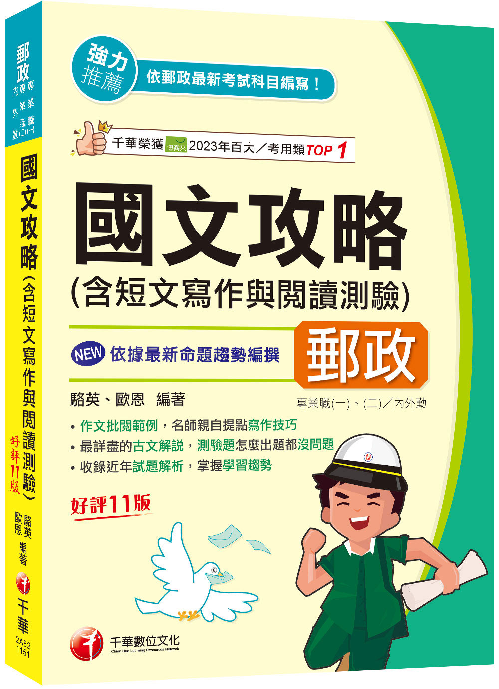 | 商品描述 | 2026國文攻略含短文寫作與閱讀測驗 (第11版 郵政專業職一 專業職二 內外勤):◎作文批閱範例,名師親自提點寫作技巧◎最詳盡的古文精華,測驗題怎麼出題都沒問題◎收錄近年 |