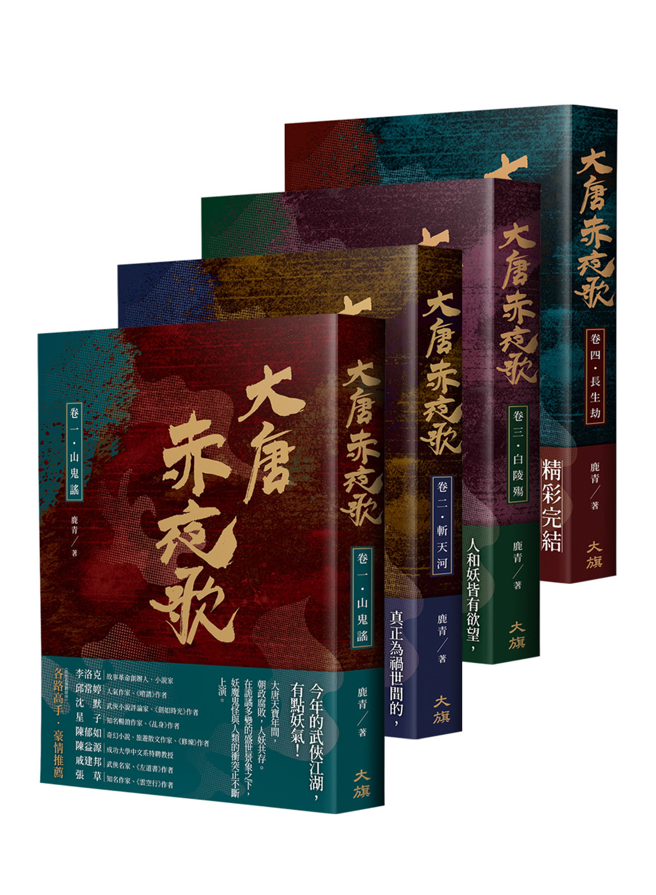 商品描述 | 大唐赤夜歌 卷一-卷四 (4冊合售):~各路高手 豪情推薦~李洛克|故事革命創辦人、小說家邱常婷|人氣作家、《哨譜》作者沈 默|武俠小說評論家、《劍如時光》作者星 子 |