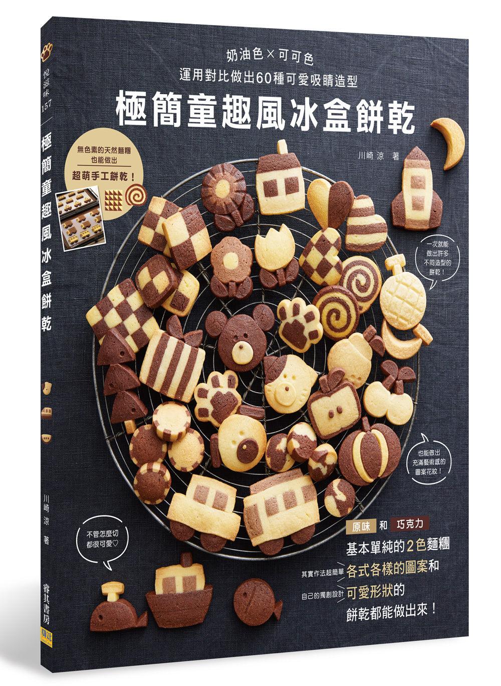 作者介紹 川崎 涼(カワサキリョウ)出生於1990年,是兩個孩子的母親,目前從事法律相關工作。以第一個孩子出生為機緣,在育嬰假(為期一年)期間開始接觸甜點製作。之後又在第二個孩子的育嬰假(為期兩年)期間,繼續透過專業甜點師的書籍和影片加以深入學習。曾在推特上發布冰盒餅乾的照片,力求展現「餅乾在烘烤之前有多麼可愛」,獲得了超過18萬個讚。後來她依照自己的興趣為孩子做了角色外型餅乾,也同樣在社群網站上獲得極大迴響。自開始製作甜點後三年,便出版了第一本餅乾食譜處女作,也就是本書。其座右銘是:「思考到極致,謹慎到極致,享受製作甜點的樂趣到極致」。除了同時兼顧養兒育女和工作之外,她也不斷追求著「看起來有趣,吃起來美味」的甜點。