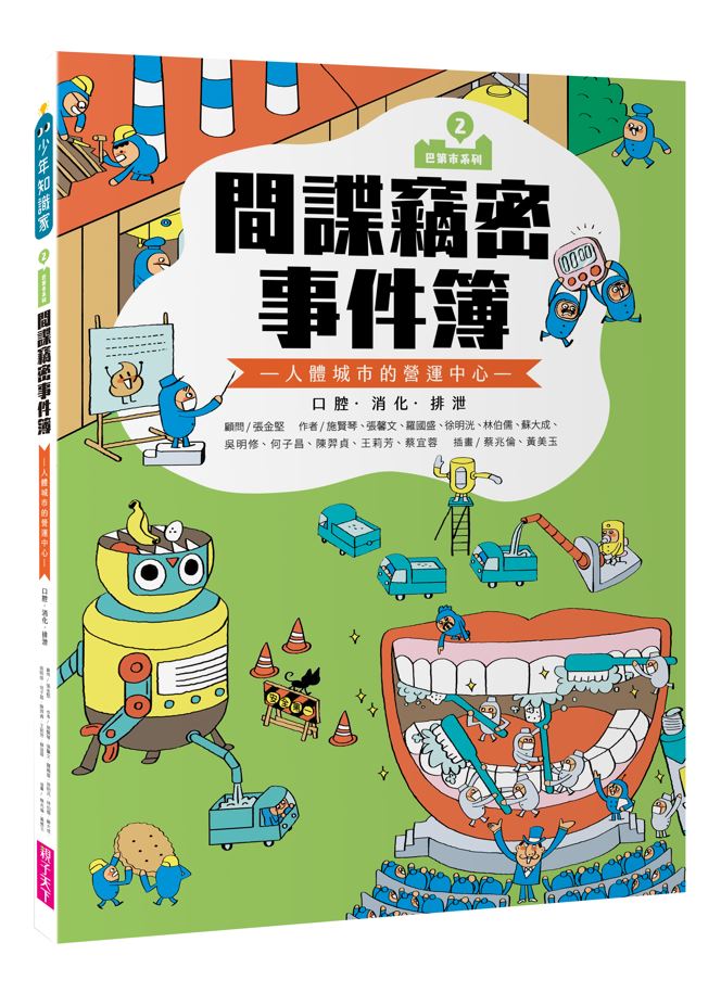 內容簡介 巴第市系列以淺顯易懂的文字,將人體比擬為城市(「巴第」與英文「body」同音),大腦是「市長」、五官是「雷達和塔臺」、白血球是「警察」、胃是「食物加工廠」等,透過生動的比擬和活潑的對話,讓讀者能跟著巴市長的腳步,宛如身歷其境,暢遊人體的各個部位。透過淺顯、有系統的解說,把複雜的醫學知識,用風趣的情節加上有趣的插畫,轉化為小朋友容易了解的故事,兼顧科學探索與兒童閱讀的趣味。內容簡介有間諜出沒,意圖竊取城市裡的機密資料!但巴第市防守嚴密,間諜會從哪裡潛入的呢?與此同時,胃食物加工廠發生抱怨風波、小腸營養物流中心的工作過量,以及大腸廚餘處理公司的謠言,也使巴第市的工作氣氛陷入低迷,面對這些突如其來的狀況,巴市長要如何運用智慧解決問題。透過精采諜對諜故事討論人體的營運中心──口腔、消化和排泄系統運作,認識食物從進口之後,會經過哪些消化系統,最後成為排泄物的過程。得獎記錄2016年第八屆吳大猷科學普及著作獎入選2015年第37次中小學生優良課外讀物評選推介2014年臺北市立圖書館「好書大家讀」書籍重點1.醫師專家群為兒童量身打造的人體科普讀物國內首次由多位專科醫師和兒童節目主持人聯合執筆,包括:臺大醫院婦產部、內科部、眼科部、牙科部、皮膚部、小兒部等8位不同專業的主治醫師撰稿,提供最專業的醫學科普知識。2.故事幽默、知識好讀,輕鬆了解身體的運作配合學童的閱讀能力,以淺顯易懂、幽默有趣的人體城市故事,解說身體的運作。第一冊談大腦、五官和皮膚;第二冊談口腔、消化和排泄;第三冊探討心臟、神經和負責運動的肌肉,全系列共36則故事,涵蓋人體最重要的概念。3.劇情結合品格教育,幫助兒童培養健康身心透過角色個性塑造和情節鋪陳,將品格教育融入故事中,兼顧兒童心理健康。4.趣味單元激發學習興趣,健康教育最佳教材精心設計「巴第市旅遊指南」和「小學生市政信箱」等趣味單元,活潑的插圖和健康知識Q & A,幫助孩子從日常生活中培養健康的好習慣。 系列共三書巴第市系列1: 超級城市選拔賽巴第市系列2: 間諜竊密事件簿巴第市系列3 :怪客入侵大作戰