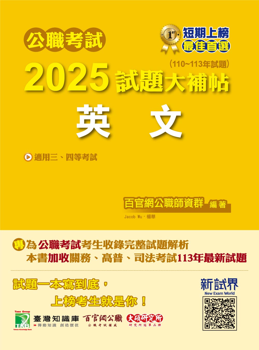 書名 / | 公職考試2025試題大補帖: 英文 (110-113年試題) |