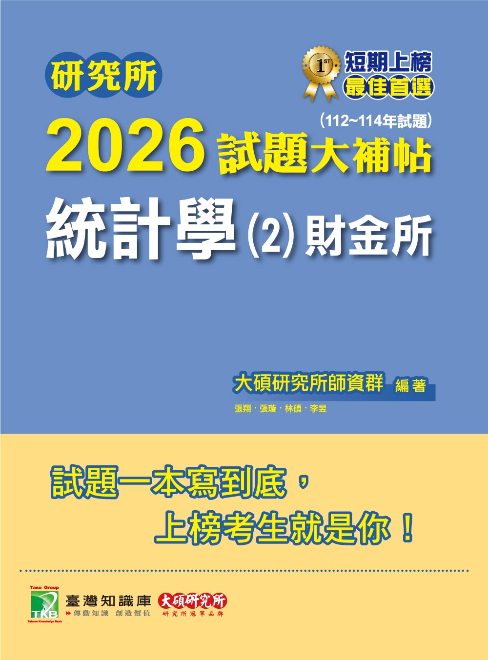 | 書名 / | 研究所2026試題大補帖: 統計學 2 財金所 (112-114年試題) |