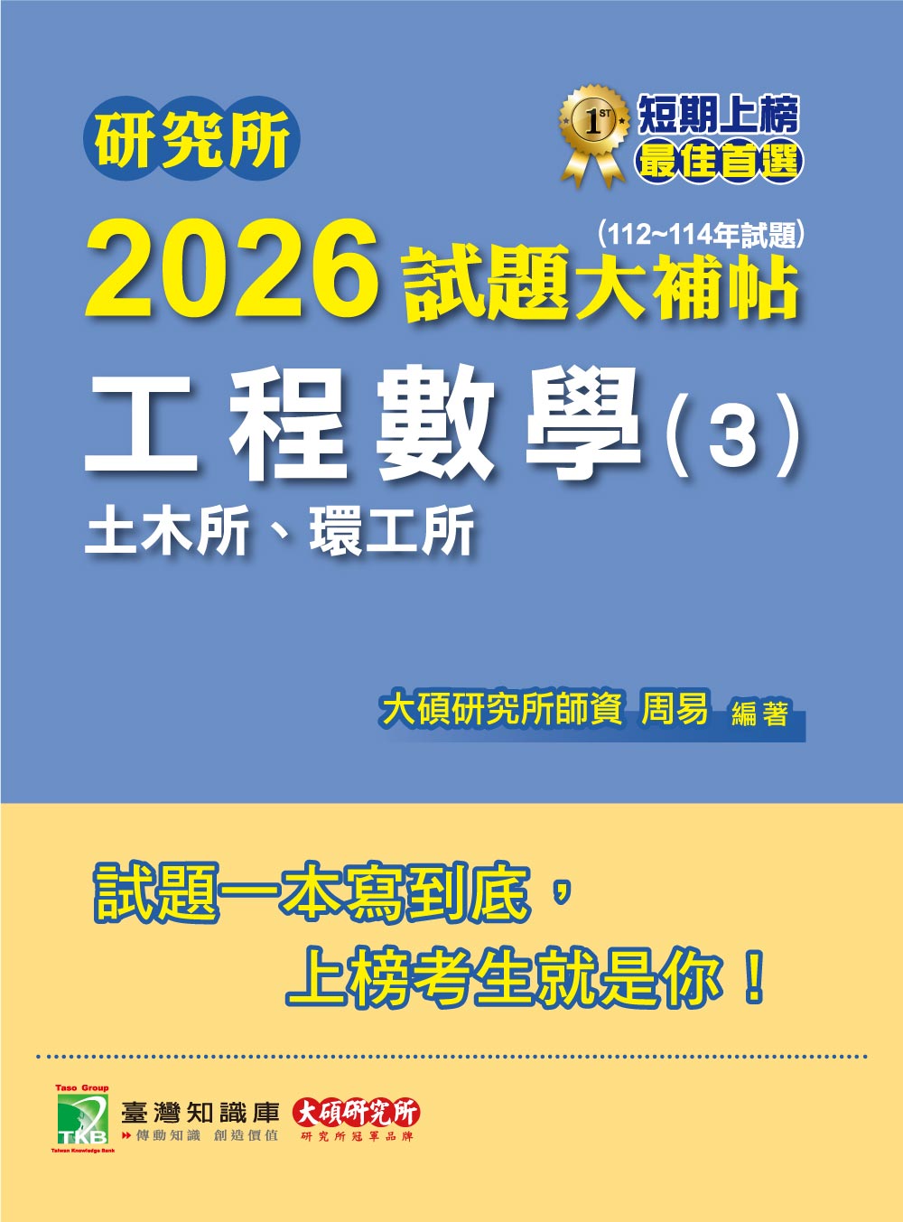 | 書名 / | 研究所2026試題大補帖: 工程數學 3 土木所、環工所 (112-114年試題) |