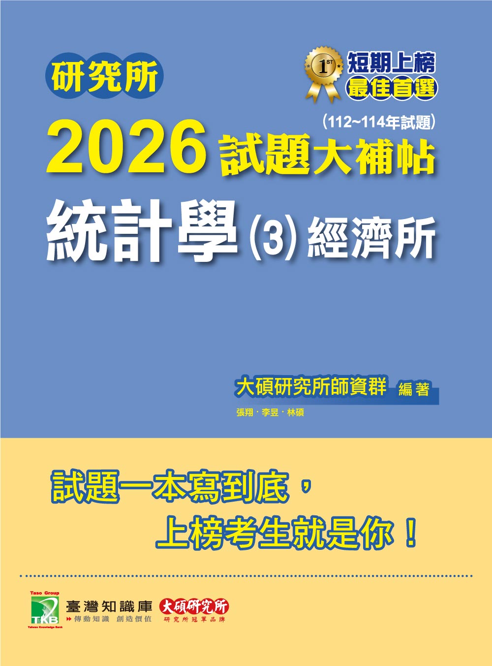 | 書名 / | 研究所2026試題大補帖: 統計學 3 經濟所 (112-114年試題) |