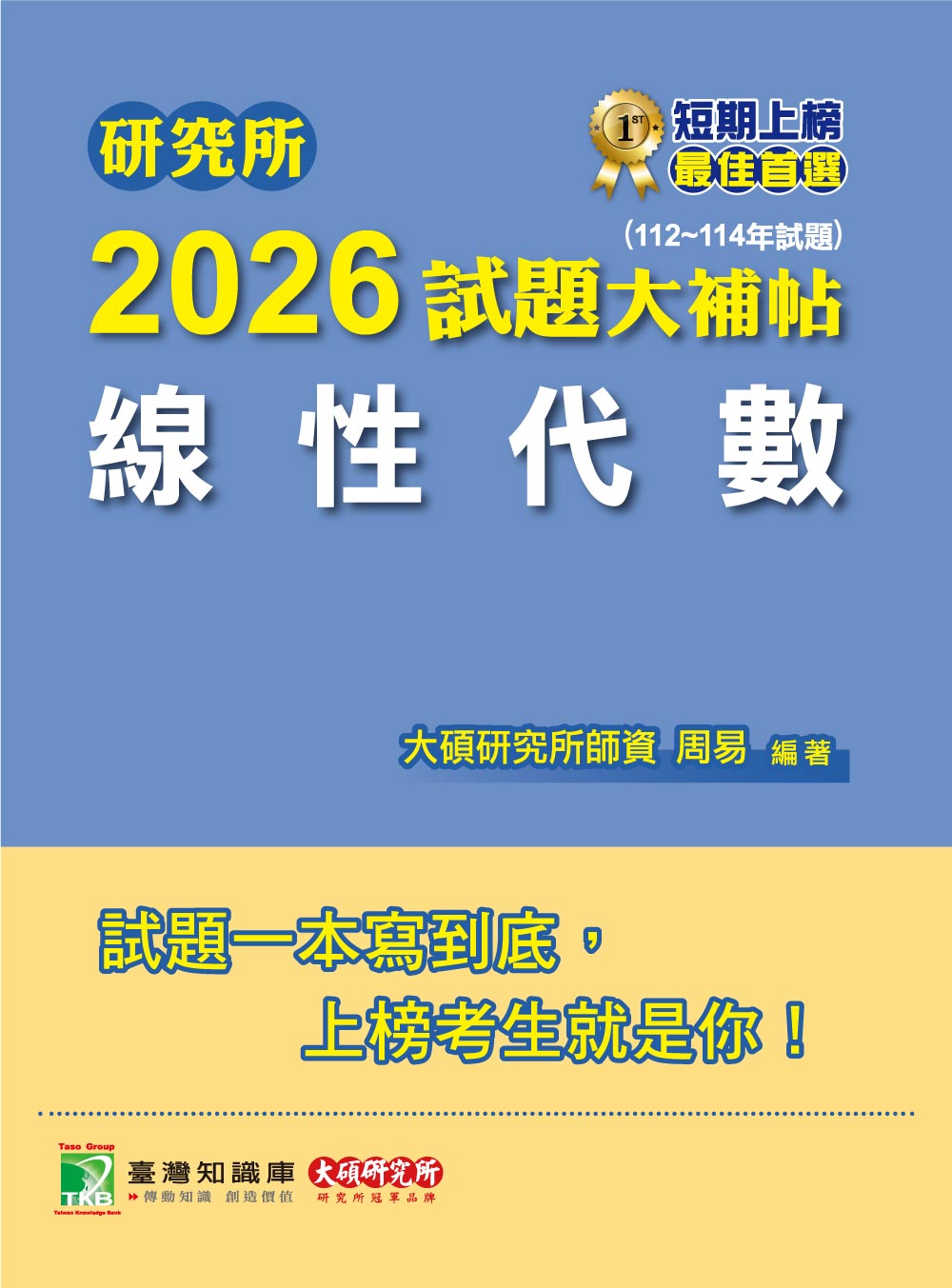 | 書名 / | 研究所2026試題大補帖: 線性代數 (112-114年試題) |