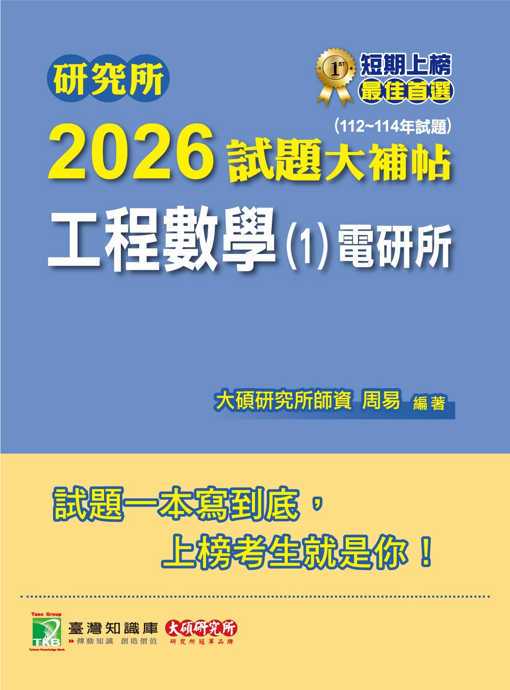 | 書名 / | 研究所2026試題大補帖: 工程數學 1 電研所 (112-114年試題) |