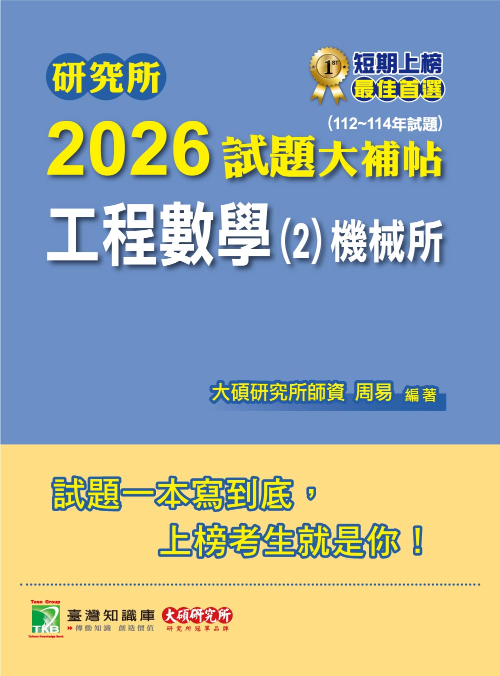 | 書名 / | 研究所2026試題大補帖: 工程數學 2 機械所 (112-114年試題) |