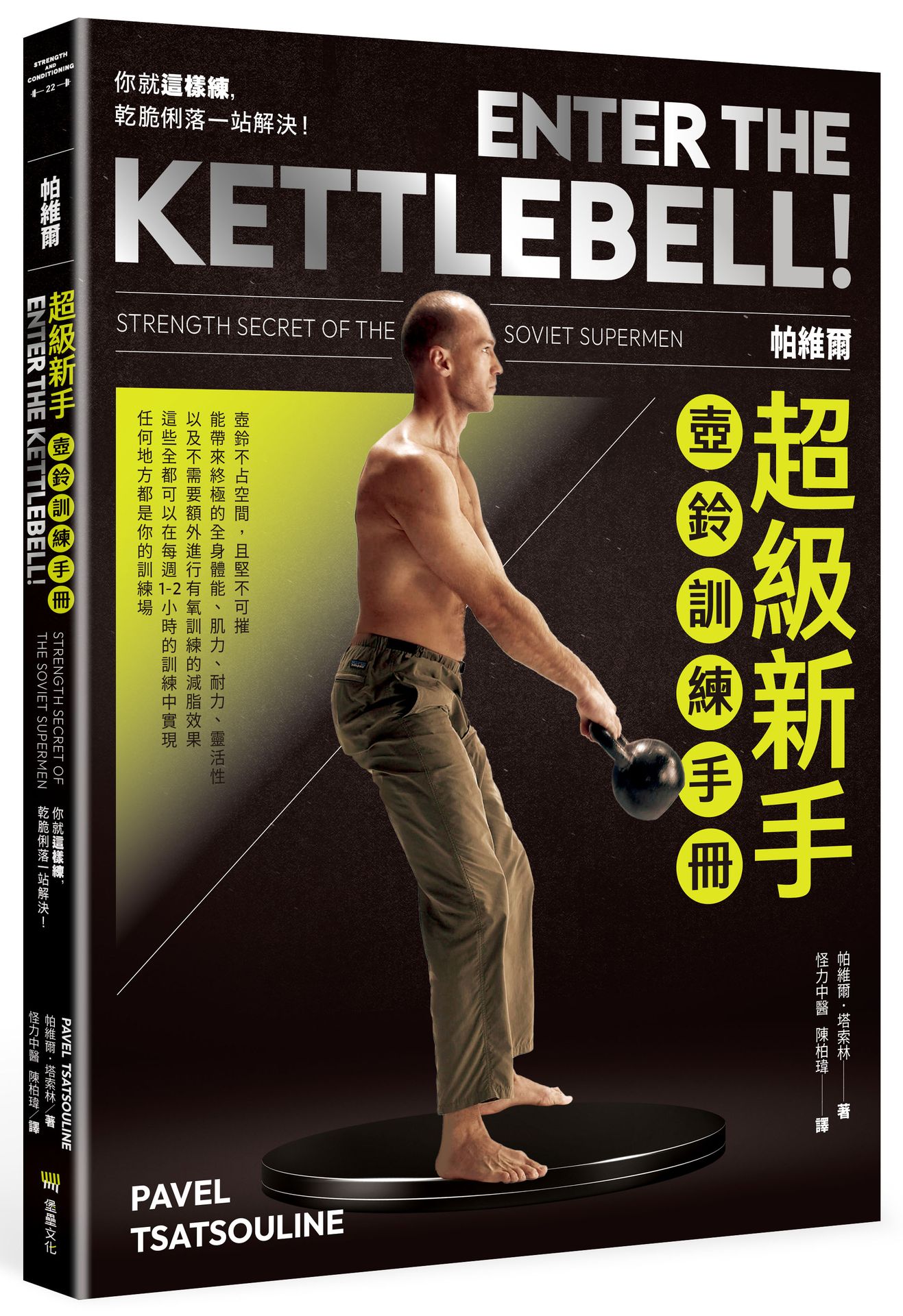 此書維持了帕維爾的一貫風格,動作少、簡單、俐落,卻充滿細節。本書教導的動作:壺鈴擺盪、土耳其起立、壺鈴上膊、壺鈴肩推、壺鈴抓舉,是所有壺鈴訓練法的基礎,除了讓你打好基礎外,也能讓你在手邊有壺鈴、僅有臥牛之地的空間裡,練出極佳的體能與肌力。