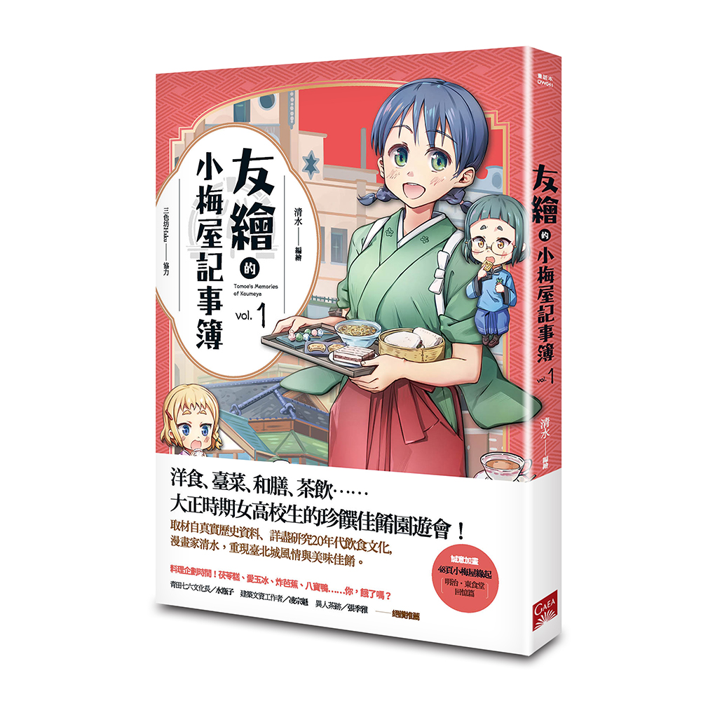 商品描述 | 友繪的小梅屋記事簿 1 (第2版):洋食、臺菜、和膳、茶飲……大正時期臺北女高校生的跨國界珍饌佳餚驚嘆園遊會!取材自真實歷史資料、詳盡研究20年代飲食文化,漫畫家清水, |