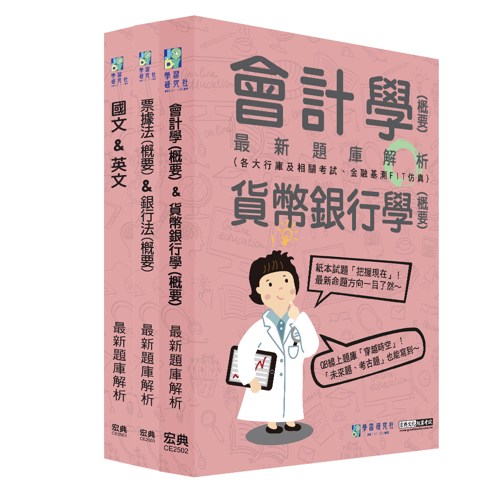 產品目錄 金融基測/銀行招考專用套書,內含:(1). 2025金融基測/銀行招考題庫完全攻略:會計學(概要)+貨幣銀行學(概要);(2). 2025金融基測/銀行招考題庫完全攻略:票據法(概要)+銀行法。(3). 2025金融基測/銀行招考題庫完全攻略:國文+英文