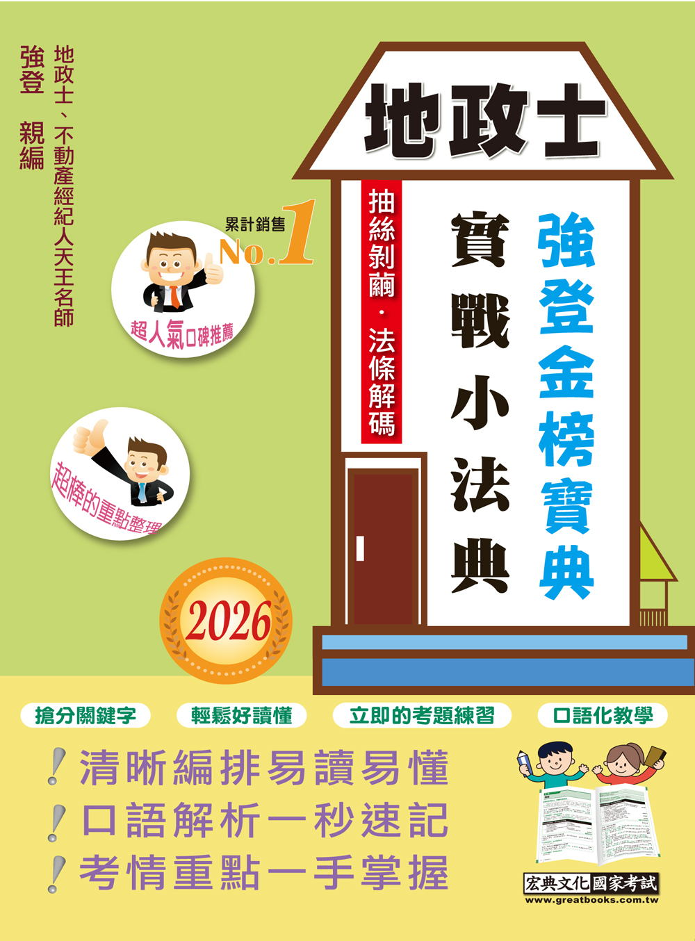 商品描述 | 強登金榜寶典: 實戰小法典 (2026 地政士):100%考試導向→將試題融入法條→邊看邊寫記憶效果最佳!★上榜必須讀好書★【工欲善其事,必先利其器】;【考試要上榜,讀本選最 |