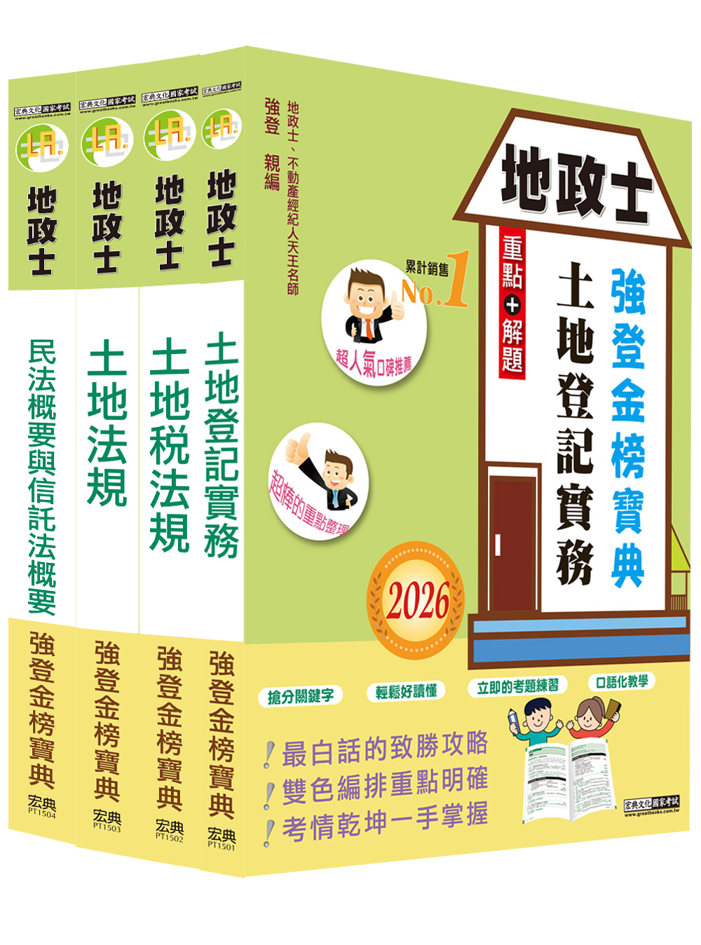 商品描述 | 強登金榜寶典: 地政士套書 (2026全新改版 地政士 4冊合售):2026全新改版!全系列均由強登老師鉅細靡遺、親自將全書課文/解析內容修訂至「對應最新修法」,再搭配「超棒的 |