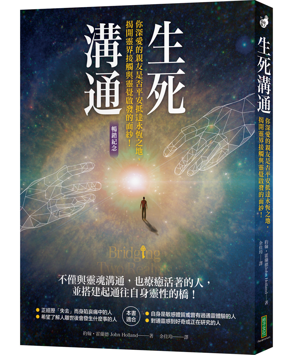 各界推薦 各界迴響或許並非人人都有一窺靈界的能力,但是我相信本書足以彌補眾多人的心。我欣賞作者從上萬人讀者、個案身上,以清晰的思維爬梳出對死後世界的輪廓描繪,那是平實的。我喜歡,也推薦給你。──宇色,「我在人間」系列作家對於有喪親之痛或尋求精神指引的人,本書提供極大的撫慰或療癒;對於懷疑者,本書亦可提供極佳的神祕感應案例,值得研究與深思,我個人偏愛第77、103、158、277、291頁的精彩描述。如何正確解讀這些案例,將是破解心靈奧祕的關鍵,大家可以仔細思辨書中的各種說法,或可獲得更深刻的啟發,不會空手而回。──成和平醫師,超自然研究家、《科學也可以有靈性》作者你可以建造的不僅是通往你自身靈性的那座橋,或許還可以聯繫上已經過世的親人 。──李嗣涔教授,台灣大學前校長、暢銷書作者針對陰陽界的溝通,作者分享了豐富的實務經驗故事,並整理出清晰的觀念及練習技術,是本知性感性和故事性兼具的好書!──周介偉,光中心創辦人我認為:家屬寧願相信有「靈界」,這樣才能撫慰他們失去親人的悲傷。家屬必須相信有死後世界,才會去進行「本土化」的悲傷關懷儀式:「牽亡與觀落陰」。這和「信我者得永生」、「只要相信,必能看見(相信即可眼見)」是一樣的道理。作者說:「我認為愛的能量是存在於整個宇宙中最強大也最具癒療作用的力量。」我非常認同。──許禮安醫師,高雄市張啓華文化藝術基金會執行長、台灣安寧緩和醫學學會不要輕易開始讀它,如果你沒做好透徹探索死後世界的準備。如同人生呱呱落地就無法回頭一樣,這本書一旦開始讀就會停不下來。──謝明杰,《老神再在》系列書籍作者具名推薦Asha,高靈訊息管道、身心靈作家宋亞樹,popo原創市集駐站作者、《通靈少女》影劇小說文字協力國際好評由極富天賦的知名通靈師約翰.霍蘭德所撰寫的這本綜合指南,有助於大家了解並培養自身的直覺能力與通靈技巧。這是一本非常實用的手冊,其中充滿了動人的故事並介紹有許多相關技術與練習。我高度推薦這本書。 ──布萊恩.魏斯醫學博士,《前世今生》作者這本書極其精采!那些已經離世的人想必正在大聲疾呼要我們閱讀這本書,以便明瞭他們真的確實存在。他們想要我們學會聯繫他們的方法──而這本書告訴了我們怎麼做。我很喜歡這本書所具有的許多特點,但其中最值得注意的是,僅僅是閱讀這本書就能夠開啟一扇神祕的大門,讓與在彼岸的親人聯繫這件事變得容易許多。 ──丹妮絲.琳恩,《神聖空間》作者 約翰.霍蘭德也向那些失去親人的人說明了他們可以如何自行與已經離世的親人進行靈魂對靈魂的聯繫,使得我們能夠在陰陽兩界之間和他們維持著某種新關係。這是一本很棒的參考指南,你會再三回頭閱讀。出色的傑作!──珍妮特.諾哈維克牧師,「內心旅程教堂」牧師及《陰陽兩界交會處》作者明白意識在死後會持續存在讓人得以摒棄傳統的迷思,發現一個新的世界,我們進而在其中認識到無須畏懼死亡,我們從未孤單一人,以及靈魂會永遠存在。我高度推薦這本書,不論是對那些正在為失去親人而哀傷的人,或如果有人期望深入了解在我們離開自己的肉體後會出現什麼情況,這本書都能有所助益。 ──艾妮塔.穆札尼,《紐約時報》暢銷書《死過一次才學會愛》作者最完整、最有根據、實用並且最具啟發性的指南書之一,能夠引領你探索在任何地方都可以發現的神祕領域。假如你渴望能夠與那些在靈界的人建立起私人的聯繫,約翰.霍蘭德的書將適切地開啟那扇門,帶領你輕鬆跨越兩界。這是一本很出色的指南書。──桑妮雅.喬凱特,《邀請你的指導靈》作者約翰.霍蘭德是世上最受尊敬的通靈師之一。現在透過這本書,他幫每個人都打開了那扇門,讓人們能夠了解神靈、死後的生活,以及如何任何人都可以和往生的親人建立起聯繫。這本書對於靈界有精采的探究,引人入勝、使人安心,是每個人都必讀的一本書! ──杜格爾.福瑞澤,《你的彩色人生》作者我真的從未見過任何描寫連結陰陽兩界的書比這本書說明得更為詳盡,涵括範圍更為廣泛,這本書有可能改變你的一生!不論你有興趣的是精神通靈能力、死後生命的證據,或是撫平你的悲傷的方法,約翰這本珍貴的傑作都能夠滿足你的要求。──莫琳.漢考克,通靈師及《通靈師鄰居:鬼魂傳訊人的現實生活經歷》作者