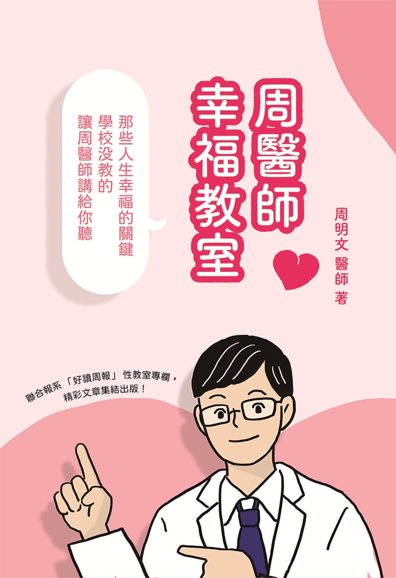 作者介紹 # 周明文,內科及家醫科醫師,在病人不多的時候,喜歡與患者聊天。# 周明文, 台灣性教育學會理事。# 周明文, 兩個孩子的爸爸,關係融洽,至今仍維持每年至少一次的家庭旅遊。# 周明文,針對小學中高級生,開了八期的性教育課程,女兒是第一期的學生,兒子是第二期的學生。# 周明文,婚姻觸礁時,不解之餘,開始研究愛情及婚姻。# 周明文,聯合報系「好讀周報」的「性教室專欄」作家,仍在連載中。# 周明文,曾經主持PODCAST 周醫師情愛聊天室半年。
