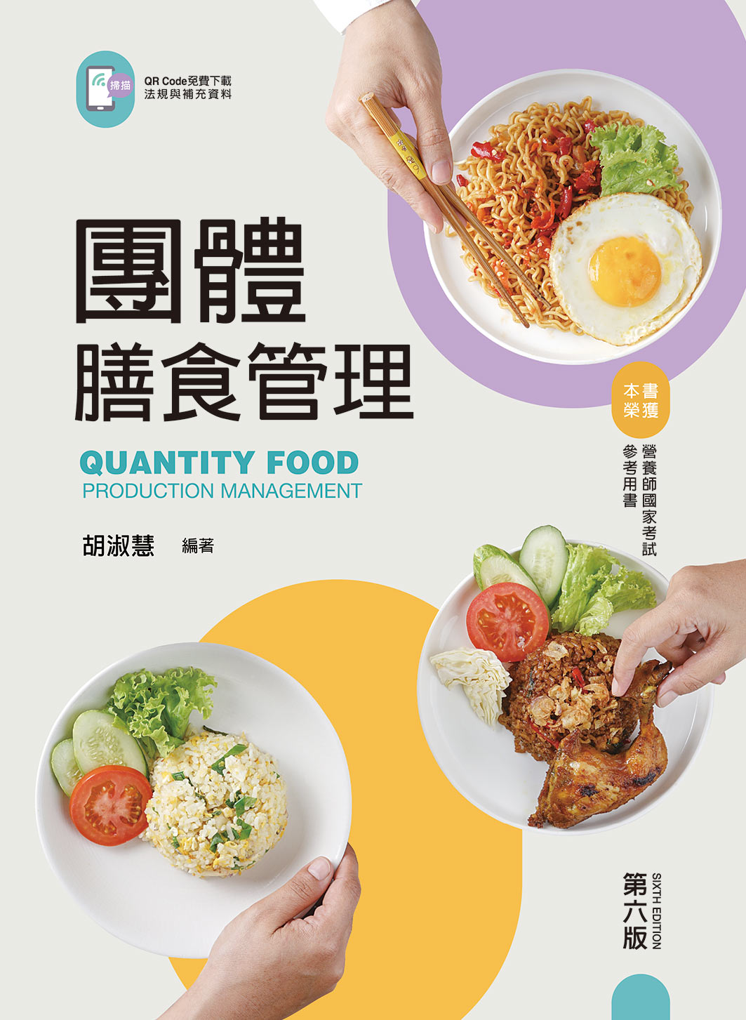 自2021年9月出版第五版以來,團體膳食管理領域因應政府政策變革,食品政策環境的變動,本書第六版也做了調整,除了延續前版完整且實用的架構與章節,更因應教學與實務需求,新增「損益平衡分析」單元,強化團體膳食機構的成本概念與經營思維,讓讀者能從設計、管理到財務評估,全面掌握團膳現場的運作。為提升學習實效與應用能力,本版持續保留章末「習題」單元,協助讀者複習章節重點、進行自我檢核,強化學習深度。