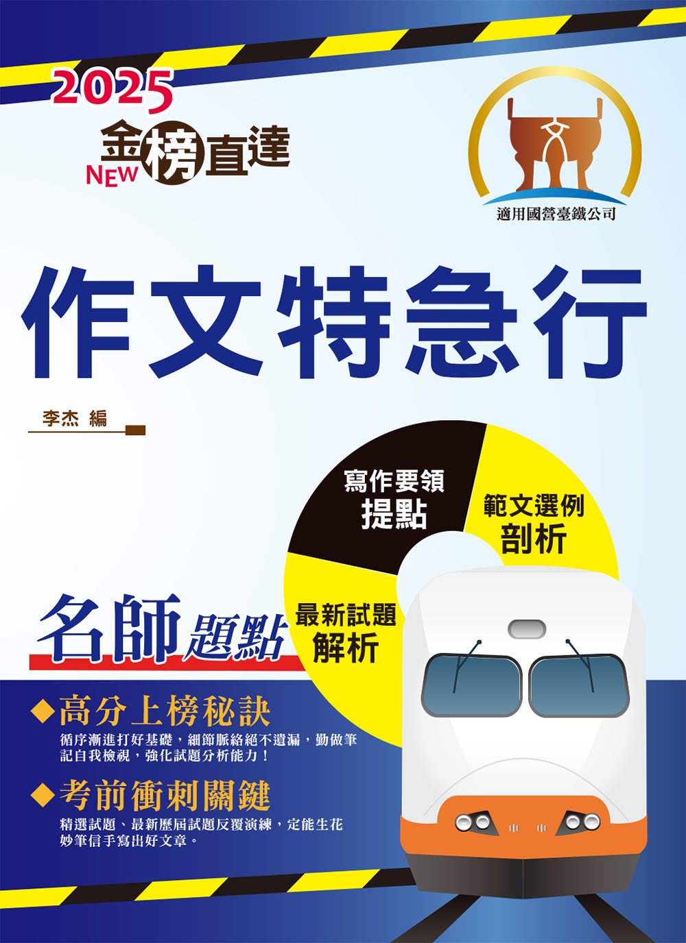 商品描述 | 2025年國營臺鐵金榜直達: 作文特急行:☆傳授寫作教學‧重點試題範例☆《作文特急行》於2024年全新改版,根據國營臺鐵從業人員甄試作文內容,由名師精心編著寫作要領、名言 |