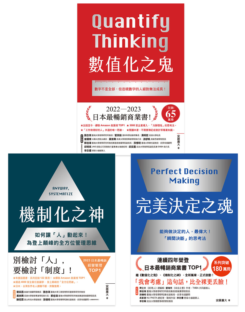 | 書名 / | 經營管理三部曲TOP 1: 完美決定之魂+機制化之神+數值化之鬼 (3冊合售) |
