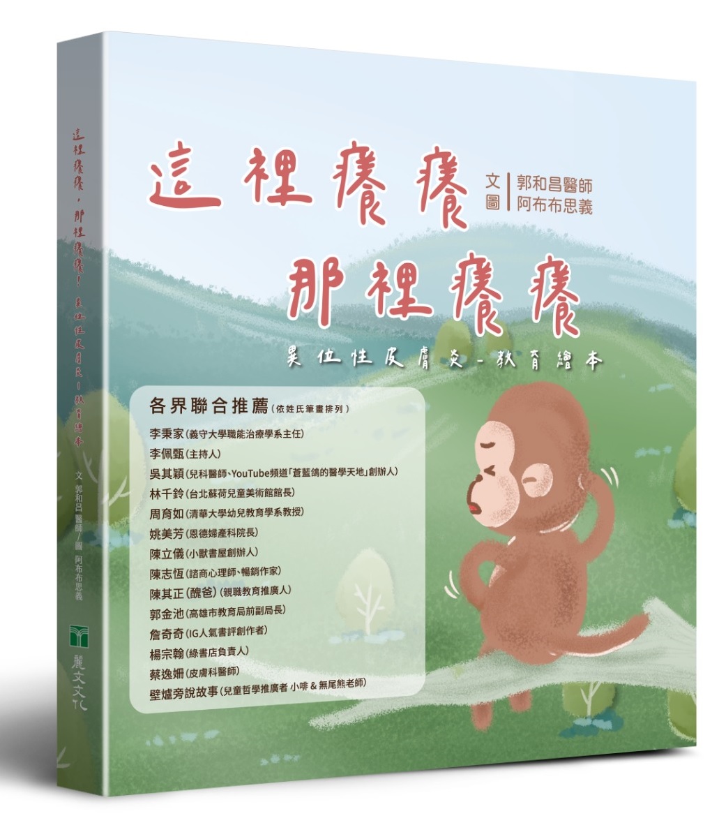 「讓每一個家長都能夠認識異位性皮膚炎」是筆者身為一個兒童過敏專科醫師責無旁貸的使命,這些年來不斷透過網路、臉書社團與粉絲團、超過百場的衛教宣導演講、報章媒體、雜誌、出版書籍……來推廣異膚。但是總覺得還有些可以努力的地方,因此腦中浮現親子共讀兒童繪本的構想,簡單易懂科普文字來介紹異膚相關資訊,讓家長瞭解醫療常識也可以正確回答孩子在繪本中所遇到的疑問。醫療科普內容包含疾病介紹、如何診斷、標準治療、飲食與皮膚保溼注意事項,提供家長實用的資訊。繪本的故事內容由麗文文化事業機構蔡博文與林敏怡藉由親自訪談多位異膚的家長所構思而成,再與藝術家張椀晴(阿布布思義/阿布)討論每一情節之繪圖,自己也正努力抵抗病魔的阿布,一心仍然掛念著如何造福他人,繼合作出版《天使的禮物:兒童特發性關節炎-教育繪本》與《小薇不見了:川崎症-教育繪本》得到廣大的迴響,今年團隊再度聯手造福更多異膚的孩子與家長。