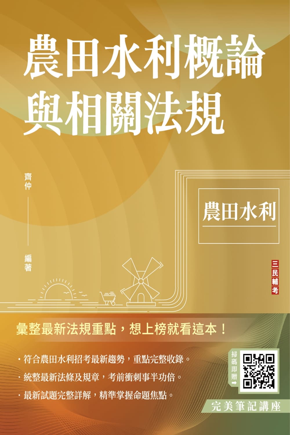 商品描述 | 農田水利概論與相關法規 (第6版 農田水利 附完美筆記雲端課程):你哪有那麼多時間可以讀書?要看就看會考的,而只收錄會考的內容,是三民輔考編撰考試用書時,最重要的核心 |