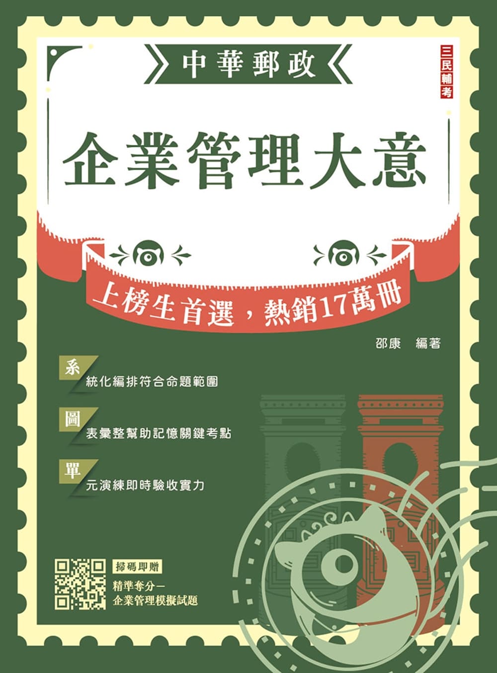 內容簡介 企業管理內容繁雜,且為各方學科濃縮,不僅包含企業經營,同時含有管理學五要「產銷人發財」,這麼多的內容都會出現在考卷上嗎?根據三民輔考的觀察,無論是郵局、農會或國營事業,在企業管理這一考科上,其實常考的範圍大致雷同。有鑑於此,作者編撰本書時就立定目標:去蕪存菁,只給讀者會考的! 2025年全新出版的郵局《企業管理大意》,由教學經驗逾三十年的三民輔考名師邵康老師編寫,特別針對報考中華郵政的考生需求,將歷年出題的趨勢與常考題型做全方位的整合與歸納,化繁為簡,讓內容更易讀好吸收,再搭配歷屆試題做演練,精進實戰經驗,增強作答實力。 本書三大亮點: ★三民輔考上榜實據,歷年口碑暢銷書。 ★全新改版郵政企管重點速成,強化易讀性與統合性,考點過目不忘! ★買書即送「精準奪分-企業管理模擬試題」,考前模擬演練,搶分上榜快人一步!。 【本書適用】 這本《企業管理大意》(書號:9786267760178)適用於適用於中華郵政職階人員甄試專業職(二)內勤「櫃台業務、外匯櫃台、郵務處理」等類科。 【本書特色】 》三民補習班企管名師邵康編撰,上榜生口碑推薦 本書由三民補習班企管名師邵康依多年教學經驗編撰,精心彙整各家學理,並參酌過去大量考古題之出題機率,去蕪存菁,只留給讀者非讀不可的重點,歷年來累積大量中華郵政招考上榜實據,成為考生口碑推薦的考用暢銷書。 》企管考科重點核心概念編排,一書概精華 本書內文分為兩大篇目:〈企業概論〉含企業營運目標、功能、營運、行銷、競爭、決策與策略管理等基礎內容;〈管理學〉含管理組織理論、規劃與控制、企業變革管理與創新、價值鏈管理、組織管理決策等管理基礎內容。皆對應中華郵政企業管理考科命題趨勢,系統化整理常考重點,幫助考生抄捷徑備戰應試。 》常考重點標誌+大量表格圖示=高效率快速學習! 作者彙總企業管理龐雜的內容,以大量的表格圖示歸納呈現,化繁為簡,讓讀者有效利用大腦的記憶體,再輔以常考重點標誌醒目提點,為讀者抓出考試關鍵,在讀者腦海中建立清晰印象,看了就忘不掉! 》收錄109~114年度5份試題,100%詳解 書末收錄109~114年中華郵政甄試試題-專業職(二)內勤試題共5份,100%題題詳解。讀者可透過演練考古題來檢驗自身實力,不明白處可研讀解析進行強化,熟能生巧,當練習到對題目有題感時,代表對答題的直覺越來越精準,即便非企管相關科系畢業的一般考生,也能輕鬆自學。 》贈品「精準奪分-企業管理模擬試題」 買書就送「精準奪分-企業管理模擬試題」,由名師精心篩選出經典模擬試題,幫助考生在最後階段全面強化實力,多年來累積口碑,千名上榜生一致推薦。詳情請掃書封QRcode! 【企管準備要領】 ◎詳讀各企業管理學家之主要理論 衡諸數年來企業管理的歷屆試題,各家學派代表人物的理論及創見向來頗受命題委員青睞,例如馬斯洛(Maslow)的需求層次理論、麥可.波特(M. Porter)的五力分析與國家競爭優勢鑽石理論、赫茨伯格(Herzberg)的雙因子理論及SWOT分析法等,舉凡經典之理論學說,都是考生必須把握的送分題,本書收錄的管理學界代表性理論部份,建議都要詳讀熟記。 ◎熟記企業管理重要觀念 從歷屆試題的分析中,不難看出企業管理的傳統重要觀念不斷地重複出現,例如BCG矩陣、SWOT分析、帕金森定律、平衡計分卡、明茲伯格(Mintzberg)提出的十種管理者角色、卡茲(Katz)的管理者三種基本能力等;唯有熟讀牢記企業管理重要觀念及各家學說理論,才能獲取高分。 ◎勤練歷屆試題 企業管理的內容包山包海,要面面俱到實屬不易,但基於國家考試命題不致過於冷僻的特色,從歷屆試題中即能發現很多考點重複出現。考前多練習歷屆試題,即可在練習過程中,不自覺強化重複出現的考點,對於備考基本盤的掌握更是裨益良多。