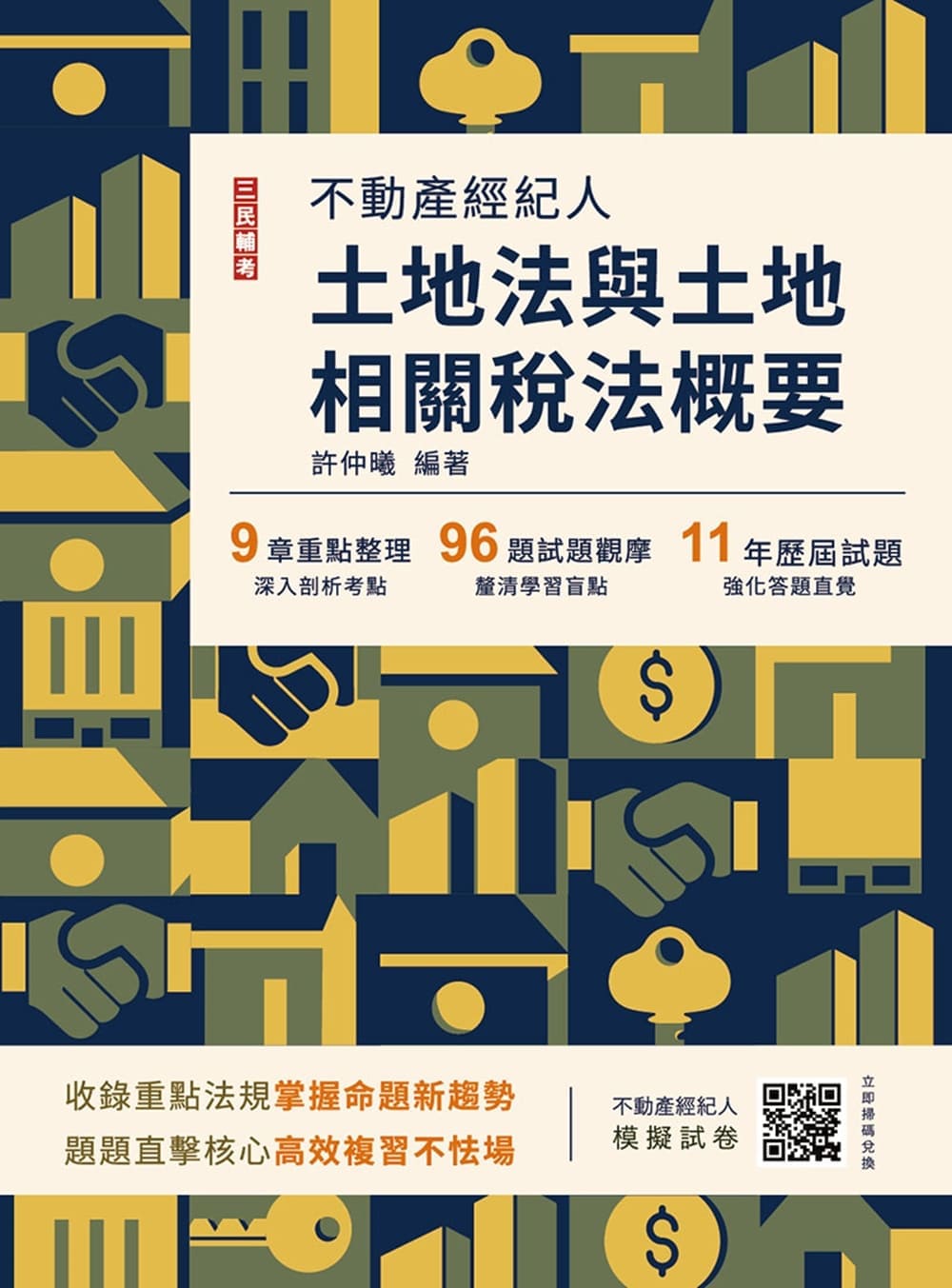 內容簡介 「土地法與土地相關稅法概要」為不動產經紀人考科中,基本中的最基本。也因如此,每年「土地法與土地相關稅法概要」的考卷上,總是會出現一些意料之外,枝微末節的考題,若對此科沒有深入了解,極有可能鎩羽而歸。經歷多次改版後,2026年版的《土地法與土地相關稅法概要》,由三民輔考特約法科作者許仲曦精心編寫,只要您願意花時間精讀,保證能奪下高分。 本次改版依全新法規整編,包含近年熱門考題「房屋稅條例」,也完整收列。如果您是今年就要考上,這本符合最新法規、貼合命題趨勢,同時將重點去蕪存菁,又題題詳解的《土地法與土地相關稅法概要》,絕對是您開始準備考試初期,就能一次打通任督二脈,打造上榜體質的優秀好書。 本書特色如下: ★96題試題觀摩,釐清學習盲點! ★11年歷屆試題,強化答題直覺! ★買書就送「不動產經紀人模擬試卷」! 【本書適用】 這本《土地法與土地相關稅法概要》(書號:9786267885031)適用於專門職業及技術人員普通考試不動產經紀人考試。 【考試簡介】 不動產經紀人考試不限科系,只要高中(職)畢業即可報考,採及格制度沒有錄取人數限制,只要總成績達60分就合格,加上考試內容不算困難,證照入手後每月約可多4~8千元薪資,算是高CP值的證照。且不動產業多數職缺不受學歷背景限制,房仲業也樂於聘用各學經歷背景的人才,因此不動產從業人員取得證照來證明自己的專業性,在博得客戶信賴方面尤為必要。