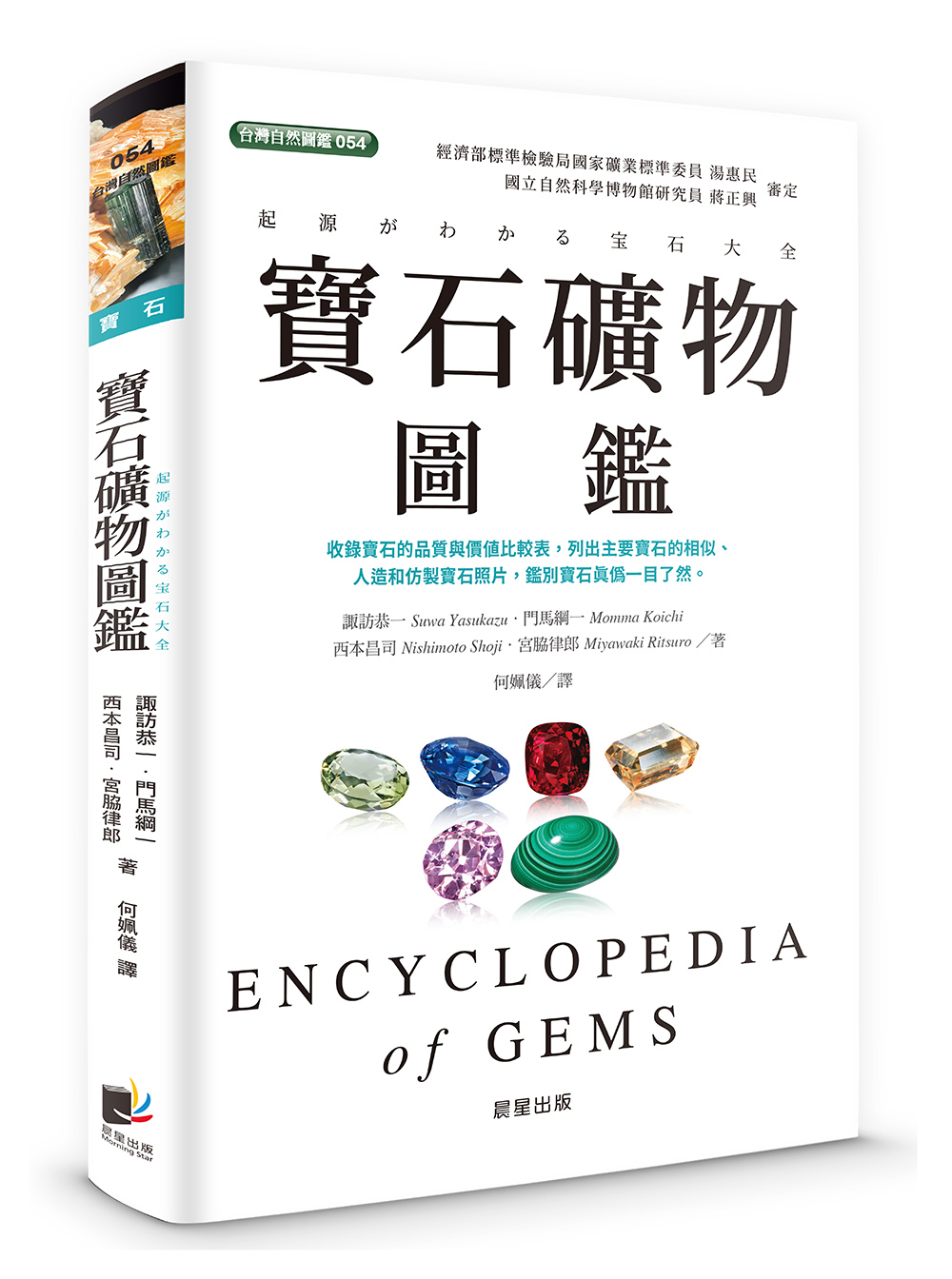 作者介紹 作者簡介諏訪恭一諏訪貿易股份有限公司董事長。1942年出生。慶應義塾大學經濟學部畢業。1965年首位獲得美國寶石研究院(GIA)寶石鑑定士(G.G.)資格的日本人。歷任CIBJO(世界珠寶聯合會)有色寶石委員會副主席、國際有色寶石協會(ICA)執行委員、NHK學園珠寶課程講師及(社)日本珠寶協會理事等職務。著有《寶石圖鑑》(晨星)等多本寶石相關書籍。門馬綱一國立科學博物館地學研究部礦物科學研究組主要研究員。1980年出生。東北大學研究所博士課程修畢。博士(理學)。國際礦物學聯合會 新礦物・命名・分類委員會 日本代表委員。主要著作有《KOUBUTSU BOOK-裝飾、欣賞、瞭解。礦物的室內裝飾》監修(BNN新社)、《小學館的圖鑑NEO 岩石・礦物・化石》監修(小學館)、《珍藏版 有趣的礦物圖鑑》(草思社)等。西本昌司愛知大學教授。1966年出生。博士(理學,名古屋大學)。專攻地質學、岩石學及博物館教育。筑波大學研究所地球科學研究科碩士課程修畢。前名古屋市科學館館員。名古屋大學博物館研究協力者。NPO法人日本科學服務理事。主要著作有《樂於觀察,了解特徵的岩石圖鑑》(ナツメ社)、《東京「街頭」地質學》(イーストプレス)、《城市中發現的「奇石」》(日本實業出版社)、《地球從起源到現在的概要》(合同出版)等。宮脇律郎國立科學博物館地學研究部主任。1959年出生。筑波大学研究所博士課程修畢。博士。國際礦物學聯合會 新礦物・命名・分類委員會 委員長。日本礦物科學會會長。主要著作有《彩色版徹底圖解 礦物與寶石的奧秘》監修(新星出版社)、《令人心動的礦物圖鑑》監修(山與溪谷社)、《寶石與礦物大圖鑑》日語版監修(日東書院本社)等。譯者簡介何姵儀雖然不戴首飾,卻為古董珠寶的典雅設計所傾迷的日文譯者。