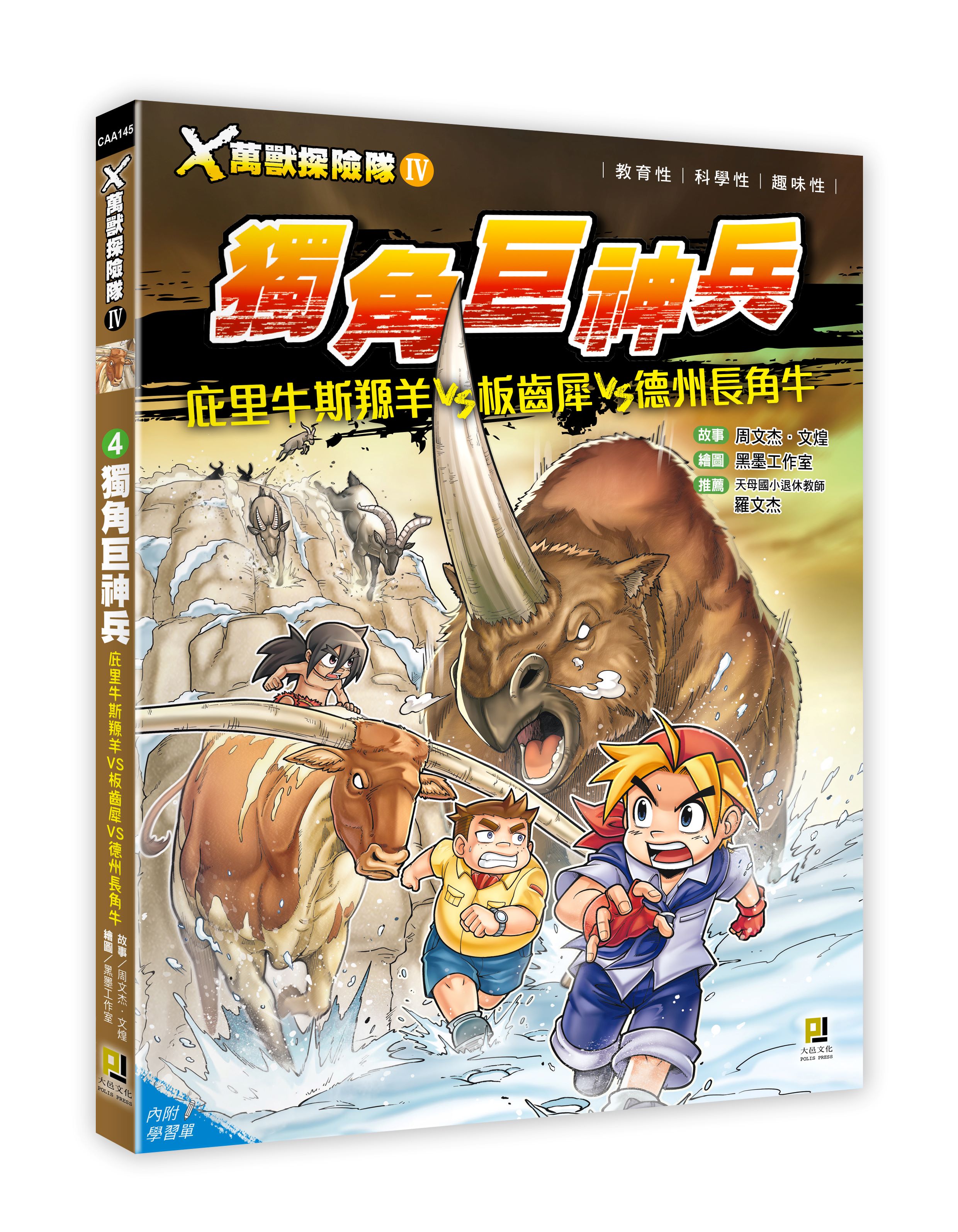 商品描述 | X萬獸探險隊 IV 4: 獨角巨神兵 庇里牛斯羱羊VS板齒犀VS德州長角牛 (附學習單):看漫畫學知識!蒐羅超過200種現存、瀕危及絕種動物情報,只要學習3步驟,趣味漫畫+驚險故事 |