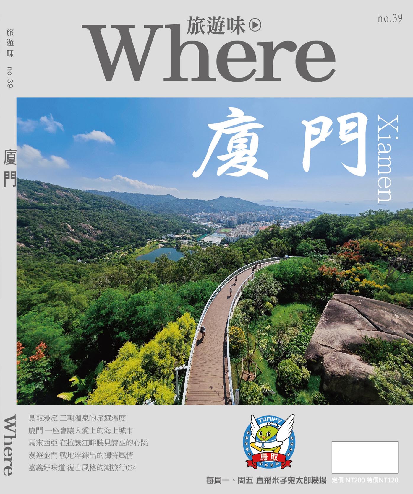 | 簡介 / | Where旅遊味: 廈門:本期將介紹1.鳥取漫旅2.廈門一座會讓人愛上的海上城市3.從金門啟程,走進廈門泉州與漳州文化慢旅文4.馬來西亞在拉讓江畔聽見詩巫的心跳5.漫遊金門戰地 |