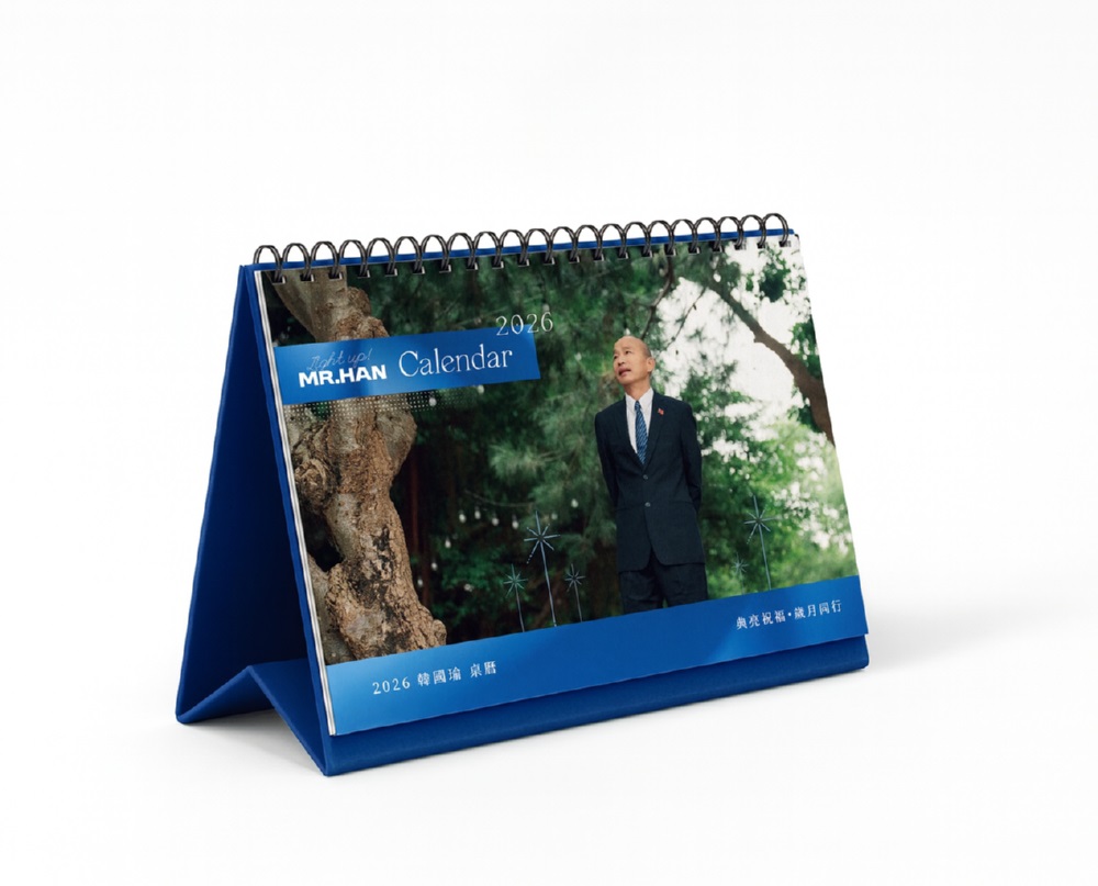 | 簡介 / | 韓國瑜2026典亮祝福、歲月同行桌曆:13張韓國瑜先生彩色桌曆(正面照片+背面月份格),質感印製、桌面必備。每組隨機附贈精美小卡1張,限量收藏。歡迎支持、收藏,把這份 |
