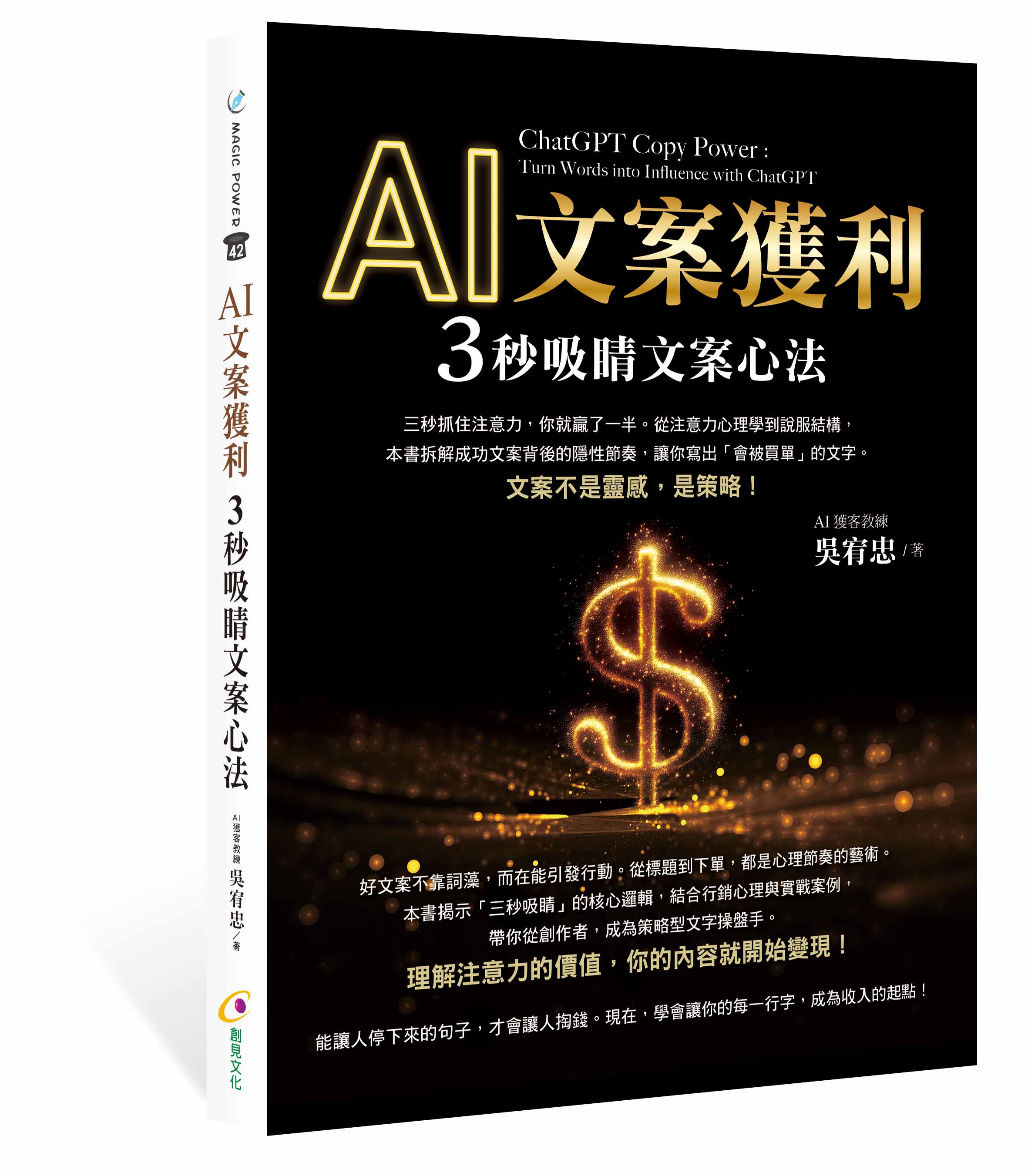 | 簡介 / | AI文案獲利 3秒吸睛文案心法:本書揭示「三秒吸睛」的核心邏輯,結合行銷心理與實戰案例,帶你從創作者,成為策略型文字操盤手。理解注意力的價值,你的內容就開始變現!能 |